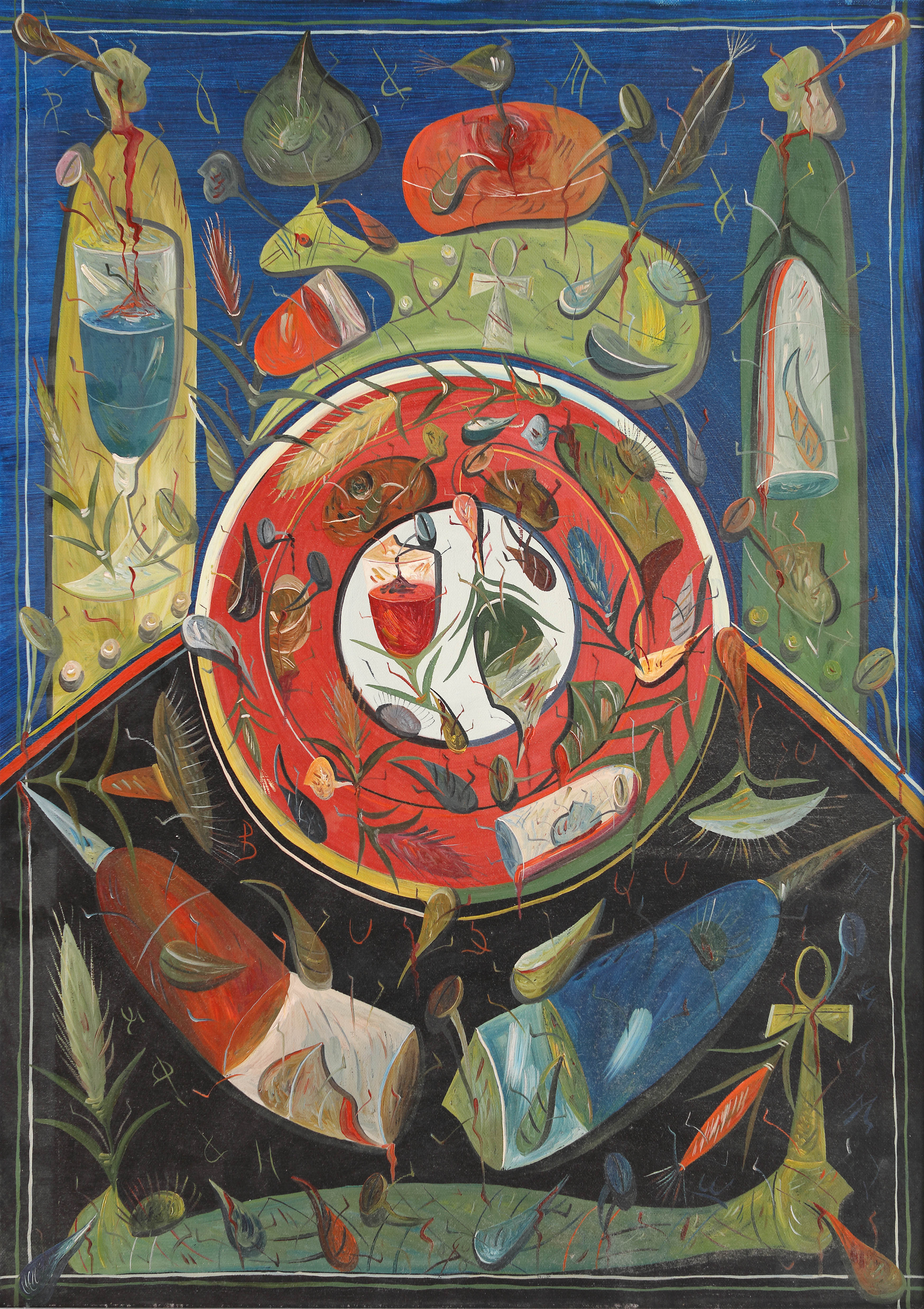 semnat, datat și intitulat pe verso, cu negru, "Ștefan Pelmuș, Roata vieții, 2000"