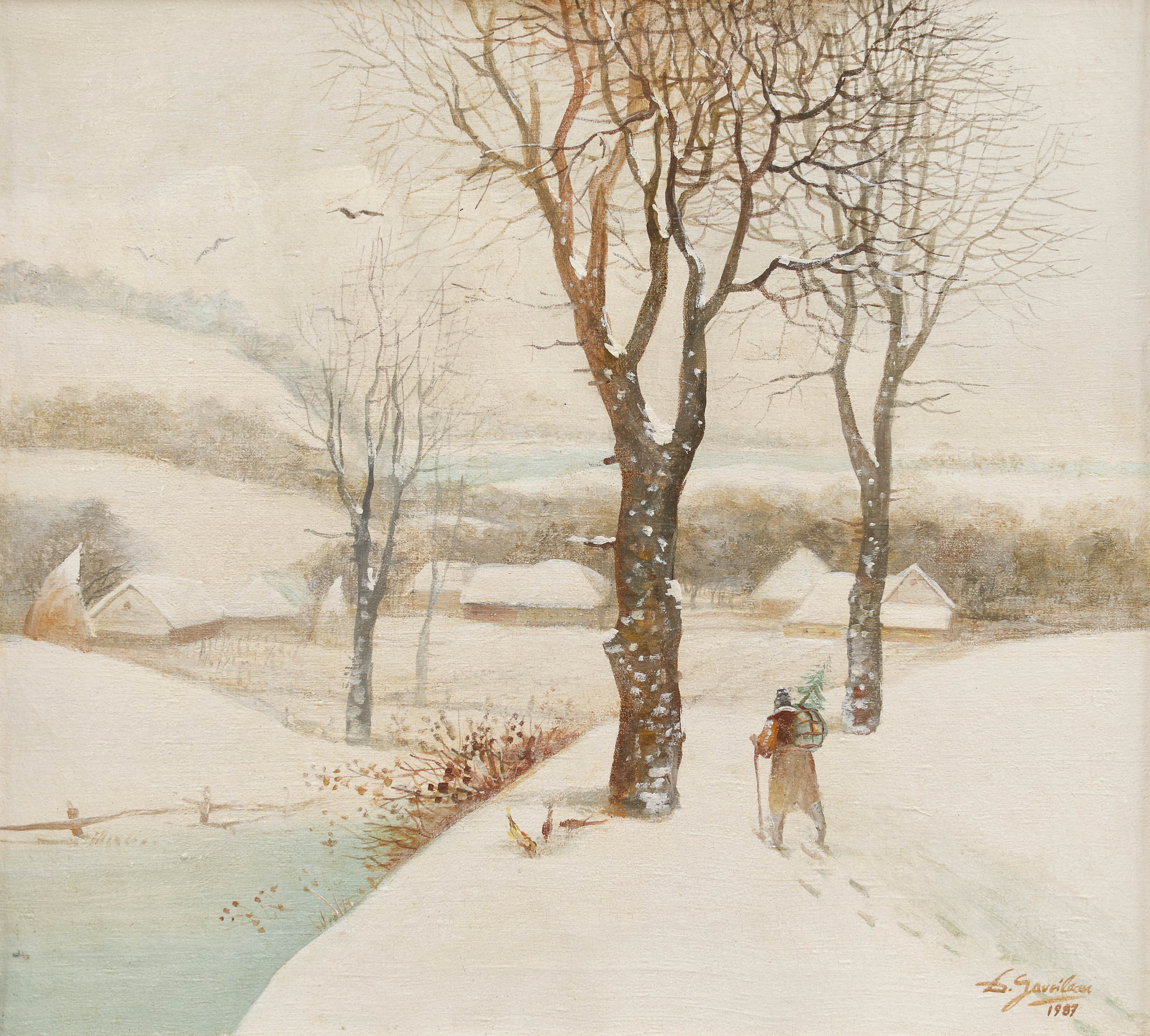semnat și datat dreapta jos, cu brun, "D. Gavrilean, 1987"
