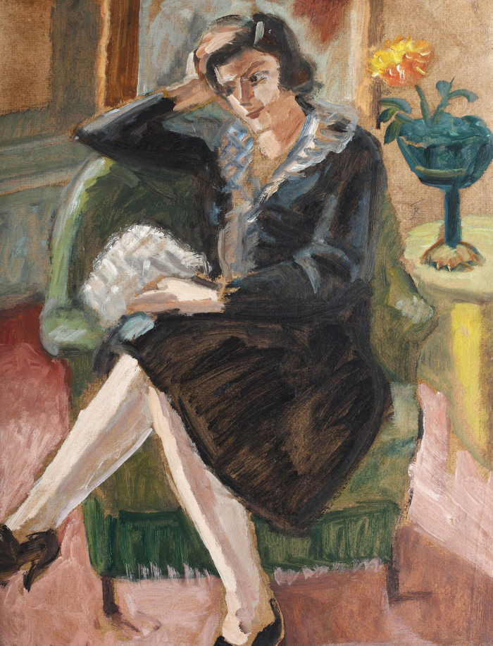 Cu greu putem privi un interior pictat de Theodor Pallady fără a ne gândi că a fost realizat, cel mai probabil, în legendarul său atelier din Place Dauphine. Tipologia acestor opere, atmosfera pe care o creează, farmecul și naturalețea personajelor surprinse în acele camere rezultă dintr-un exercițiu și o putință a artistului de a surprinde și puncta nevăzutul și inefabilul. Ca în cazul marilor „clișee” folosite în istoriei artei, „interiorul” tip Pallady este fără îndoială o categorie inedită și nereproductibilă în pictura românească. Modelul feminin și prezența sa în interiorul parizian, în nud sau în posturi cotidiene a fost deseori interpretat într-o notă simbolică, căutându-se o anume poezie a acestor compoziții. Lucru lesne de presupus, având în vedere folosirea istorică a modelului feminin privit printr-o prismă simbolistă, motivul s-a detașat totuși în timp de această încărcătură. Simbolist poate în preajma lui 1900, sub influența unui Moreau sau Puvis de Chavannes, în perioada interbelică Pallady construiește interioarele sale sub pură observație modernistă, vibrând parcă la creația amicilor nabiști (Bonnard, Dufy sau Matisse) ce executau aceeași temă. Întreaga operă de maturitate a lui Pallady, în special în cazul interioarelor, ne dezvăluie o căutare a relațiilor intime, de structură, modelate într-o regie și într-o scenografie ce păstrează aparențele firescului. Maniera astfel modelată a compus acel spirit intimist recognoscibil și în „Lectura” Cu o recuzită epurată și proiectată pe un fundal neindivizualizat, compoziția de față este cu prisosință definită de modelul ales: suprafața picturală este definită de acțiunea centrală, aspectul cromatic este coordonat de paleta aleasă pentru reprezentarea trupului și a rochiei, iar esența tabloului este și ea punctată de trăirile personajului. (I.P.)