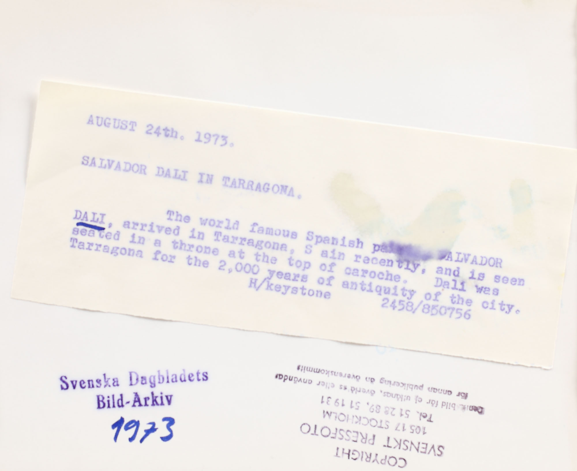 71. Fotografie de presă reprezentându-l pe celebrul Salvador Dalí pe un tron, Tarragona, Spania, 24 august 1973