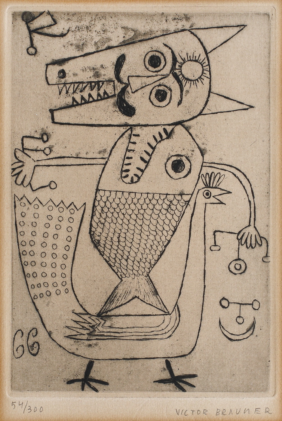 semnat dreapta jos, sub cadru, în creion, "Victor Brauner"; numerotat stânga jos, sub cadru, în creion, "54/300"