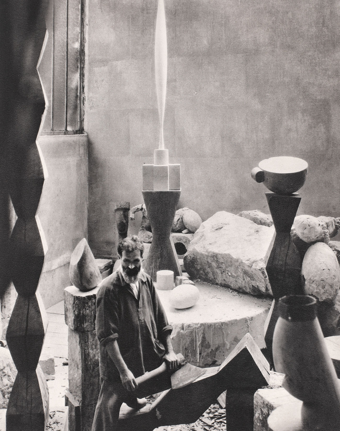 56. Celebră fotografie ilustrându-l Constantin Brâncuși în atelierul său [1927]