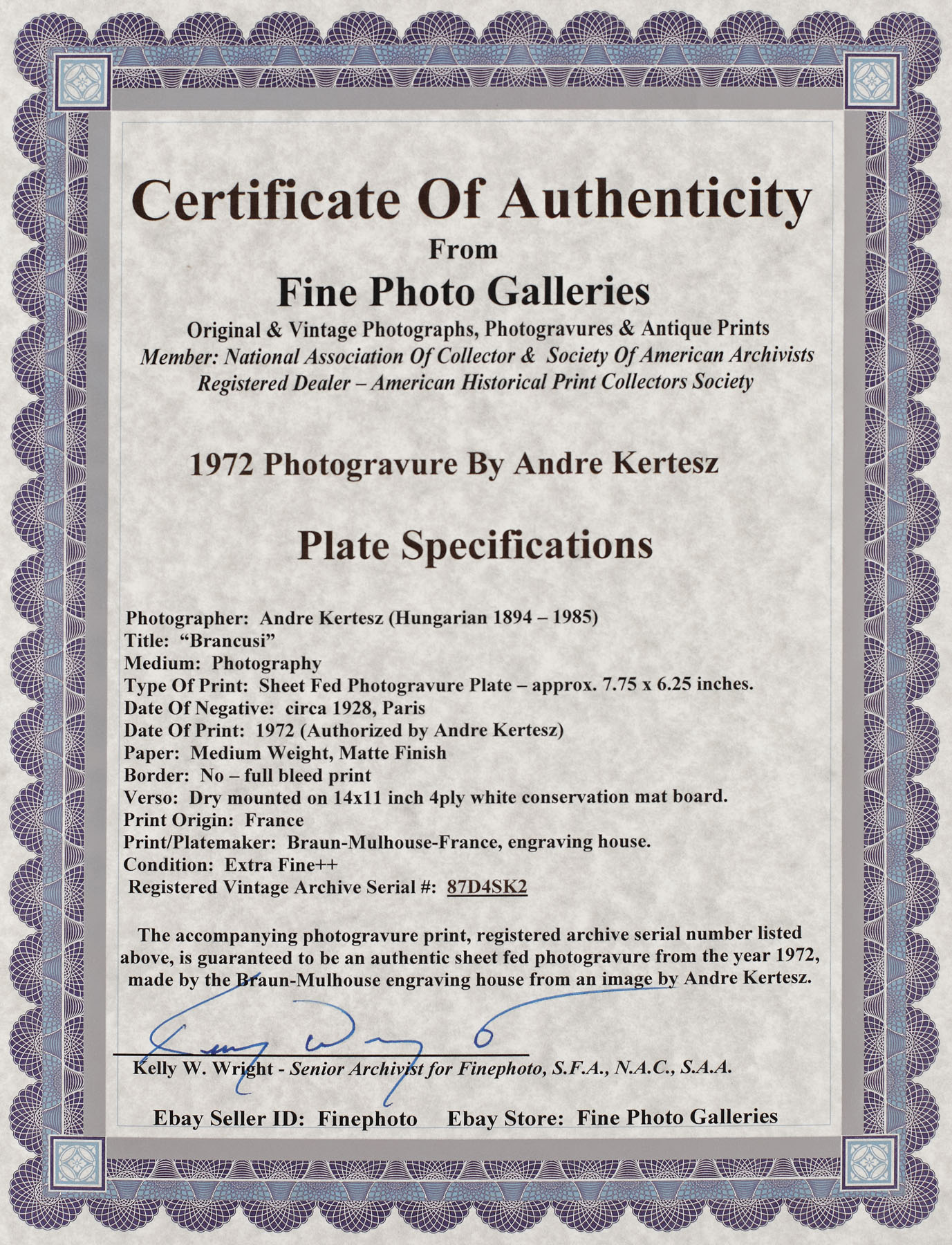 Fotografia este însoțită de certificat de autenticitate.