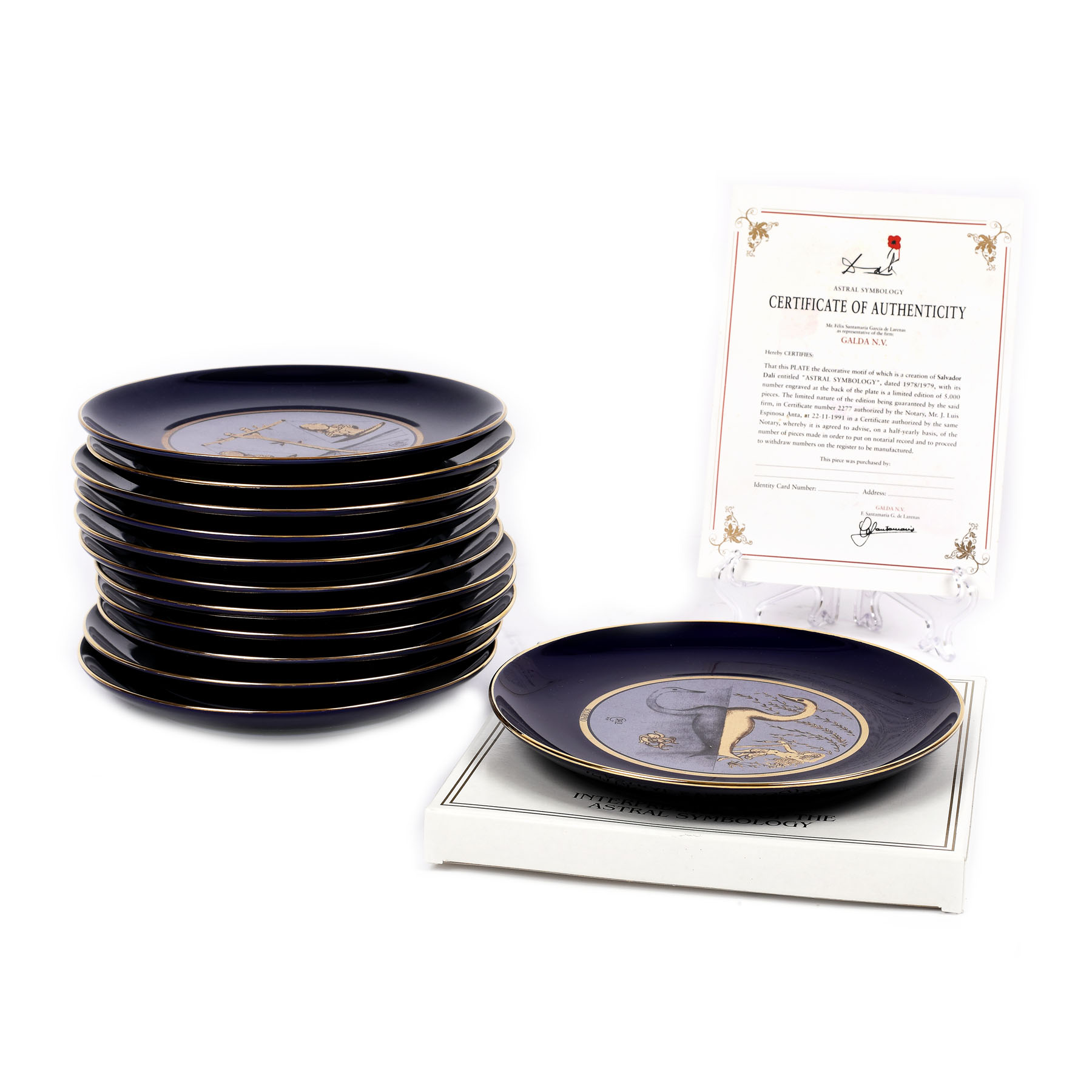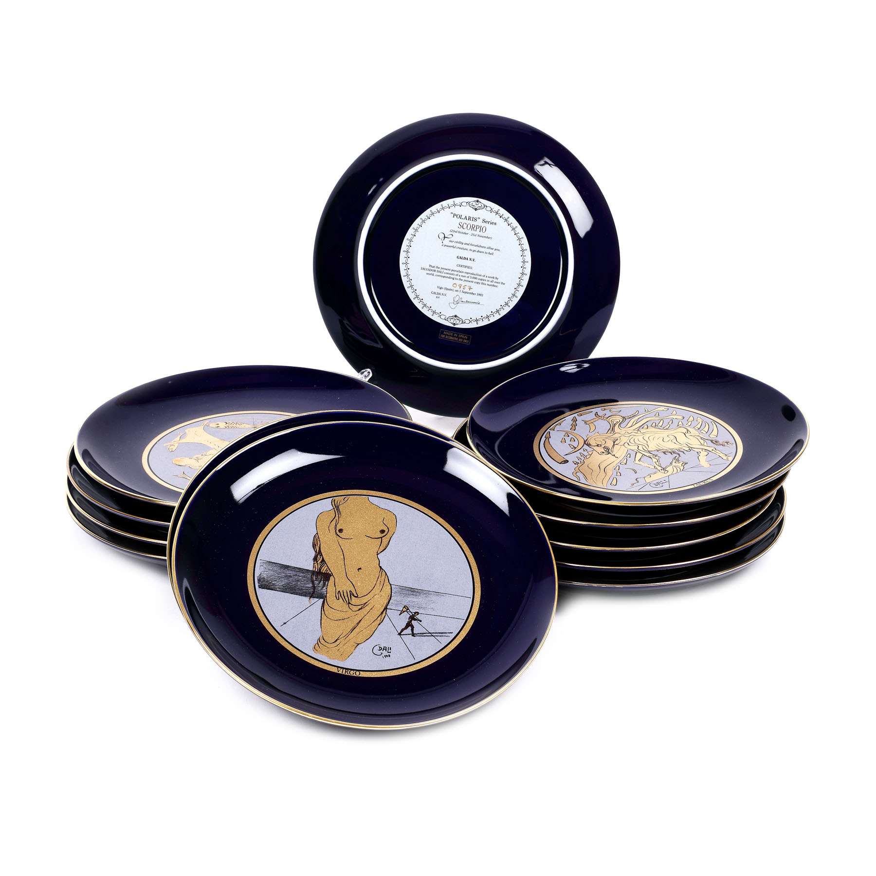 47. Lot format din 12 platouri decorative, reprezentând cele 12 zodii, ilustrate de Salvador Dali, ediție limitată de 5000 de exemplare