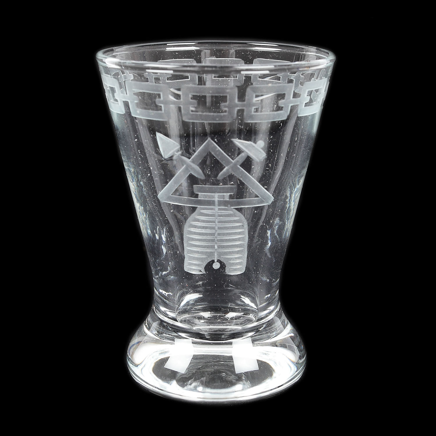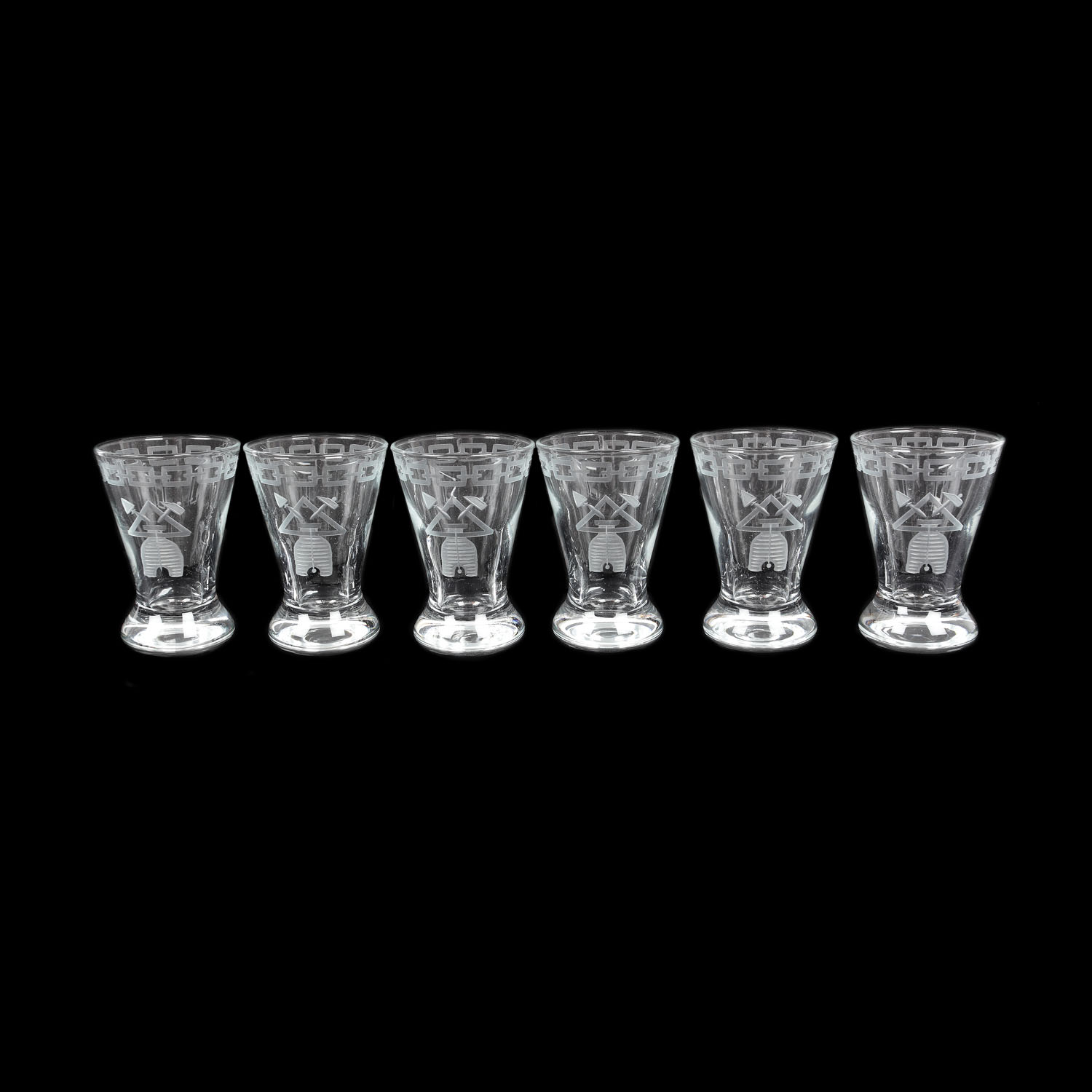 47. Inedit lot format din șase pahare de băutură desert, decorate cu însemne masonice