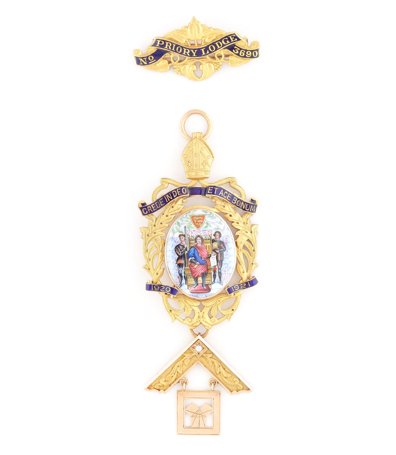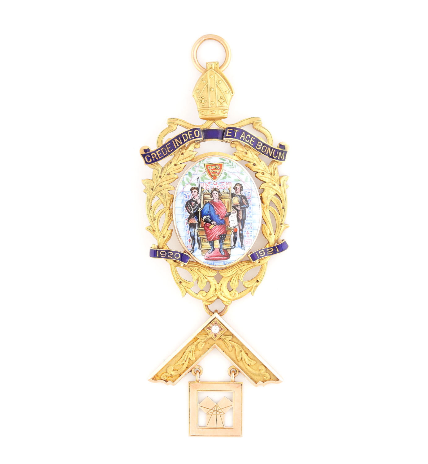 53. Ordin masonic, din aur, decorat cu safir alb, realizată de William Pyke & Son Ltd, 1921, în cutie originală, piesă excepţională, de colecție
