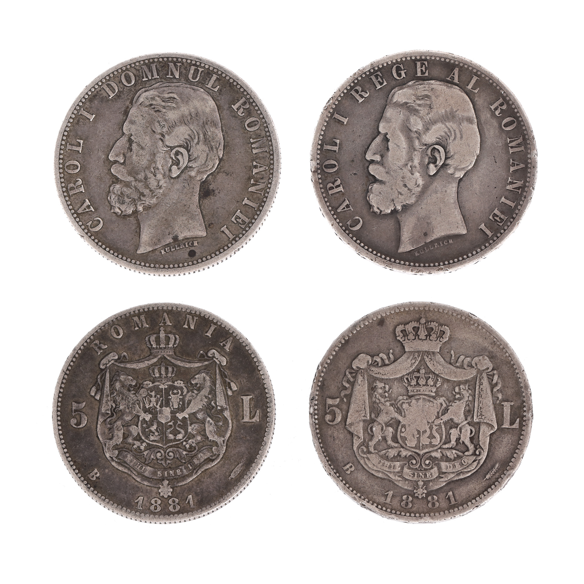 63. Lot format din două variante ale monedei de argint 5 Lei 1881, Carol I - Domn și Rege, argint