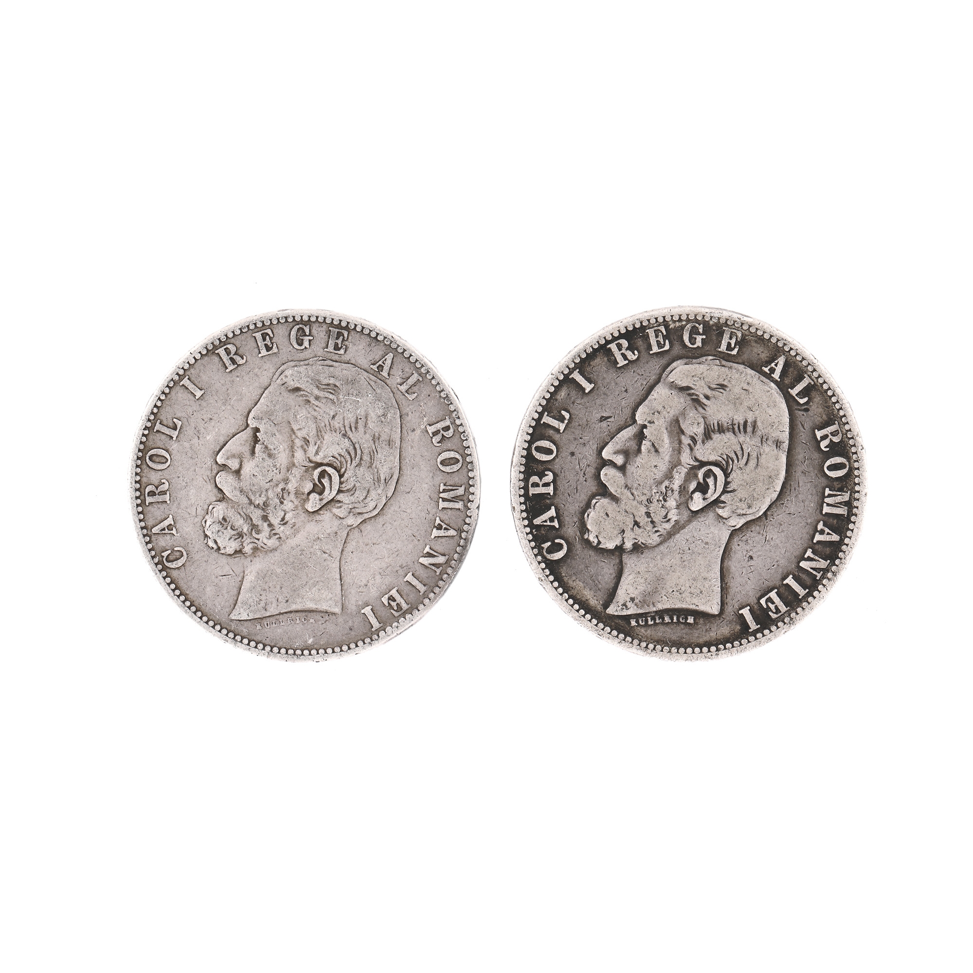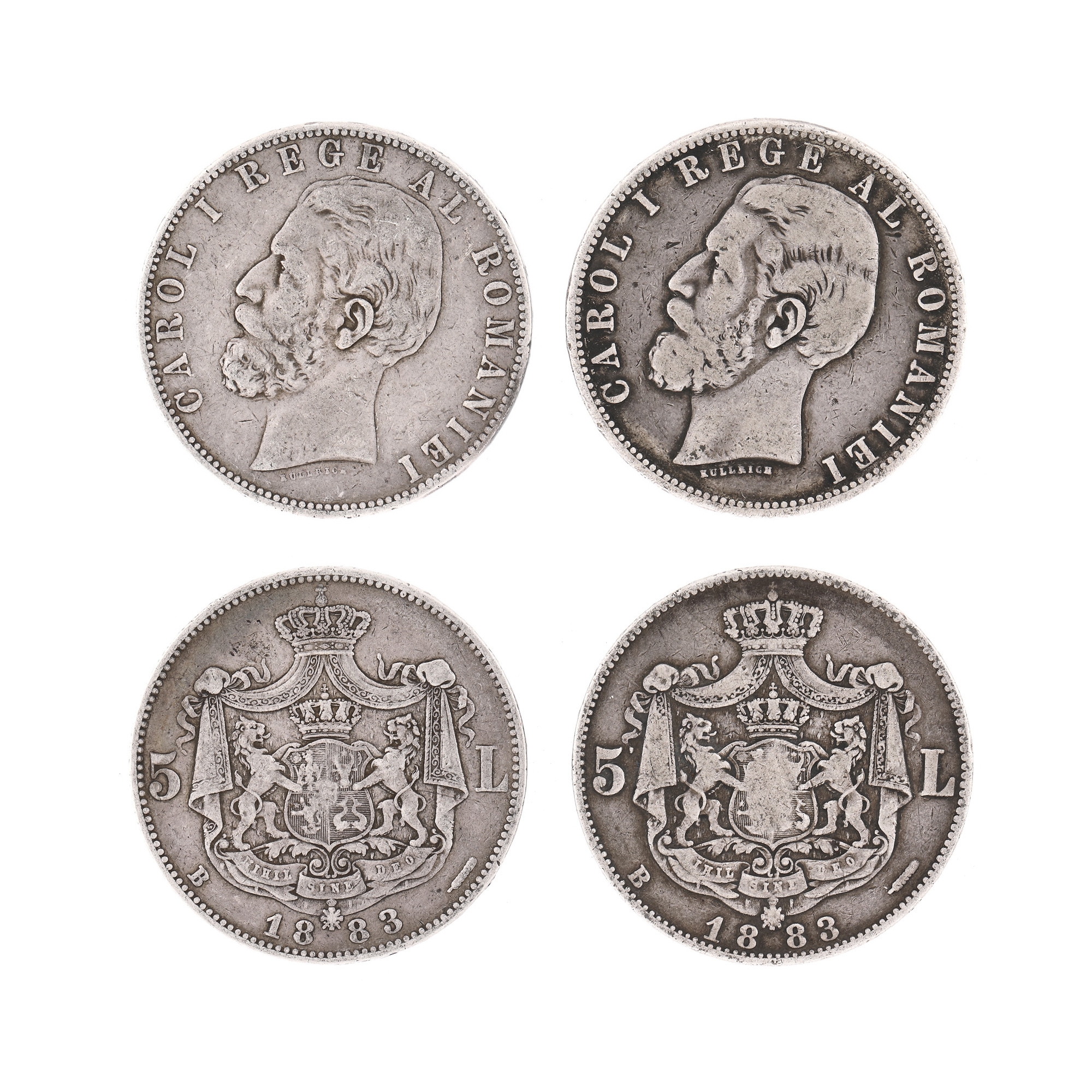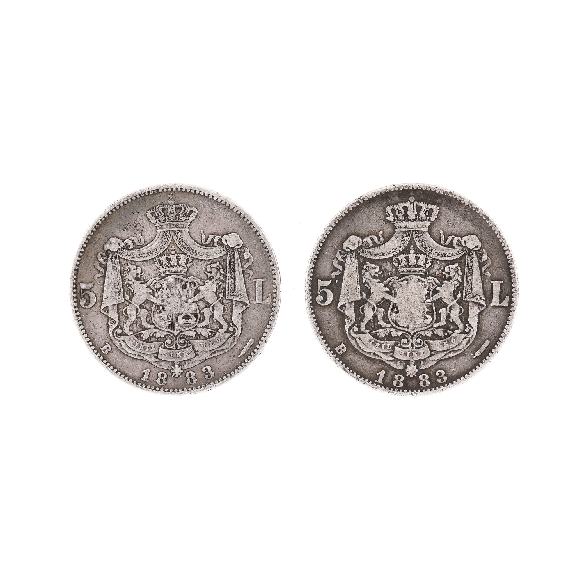 76. Lot format din două variante ale monedei de argint 5 Lei 1883, romb și dreptunghi în coroană
