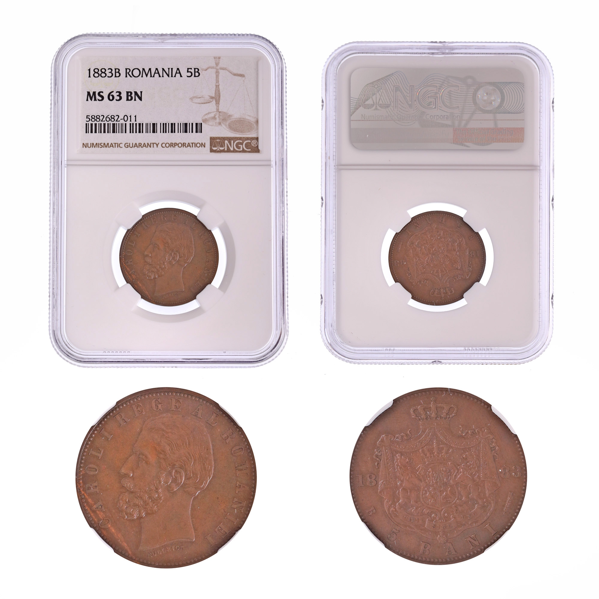 73. Moneda 5 Bani 1883B, MS 63 BN