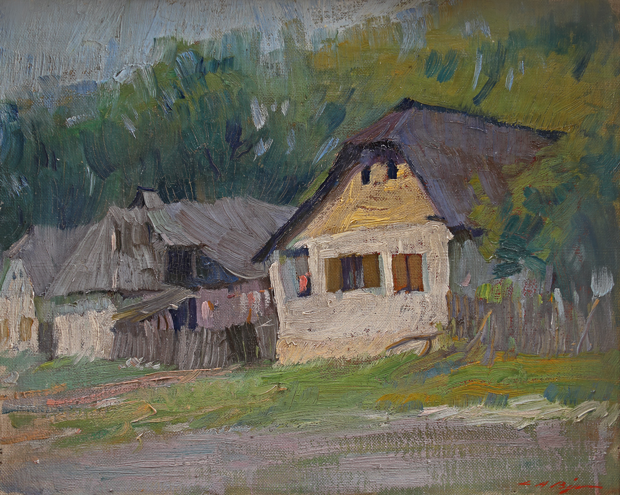 semnat dreapta jos, cu roșu, "L. A. Biju"