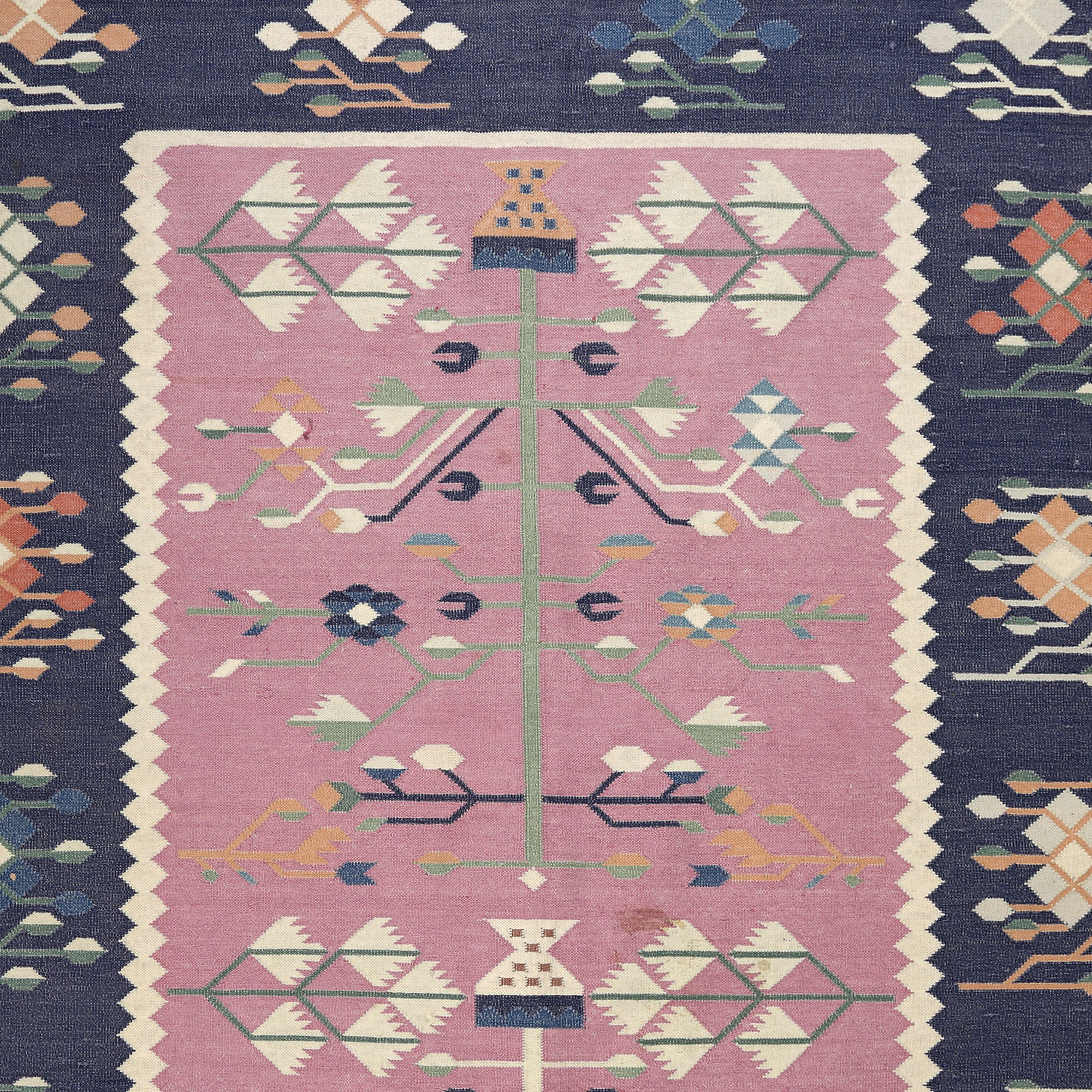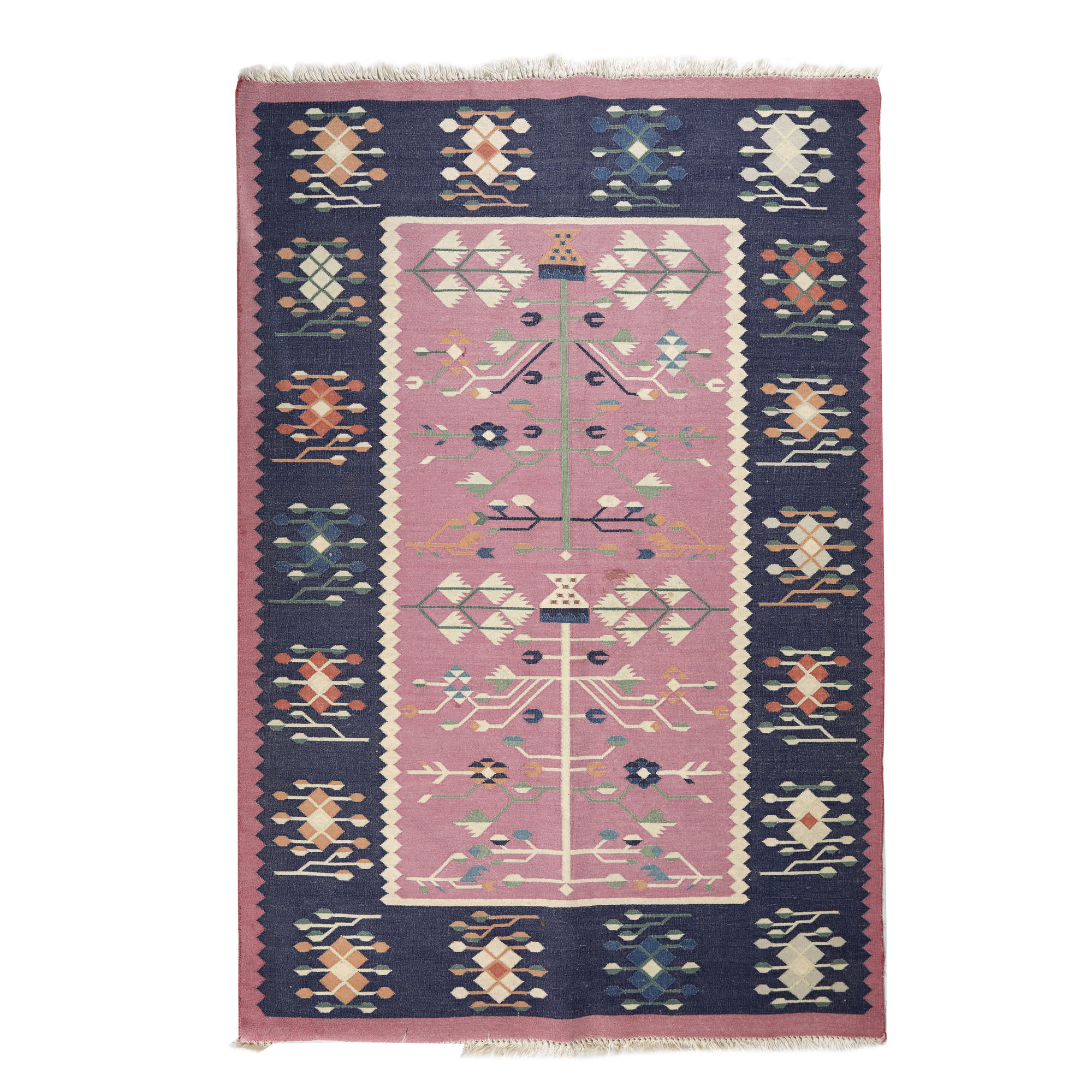 94. Covor din bumbac, decorat cu motivul pomului vieții și melanj de motive oltenești și moldovenești, a doua jumătate a sec. XX