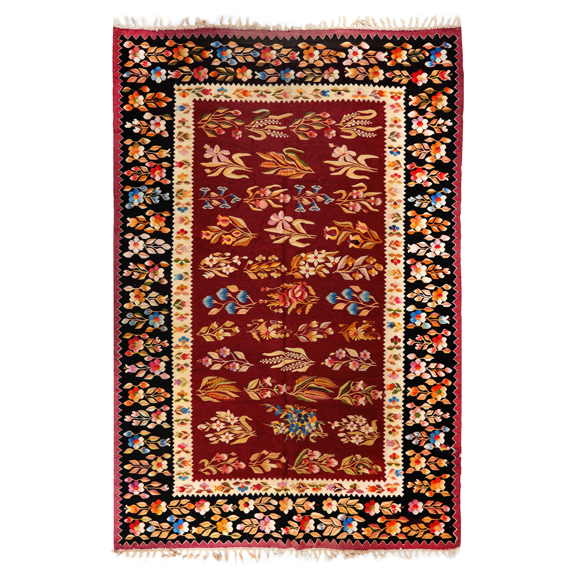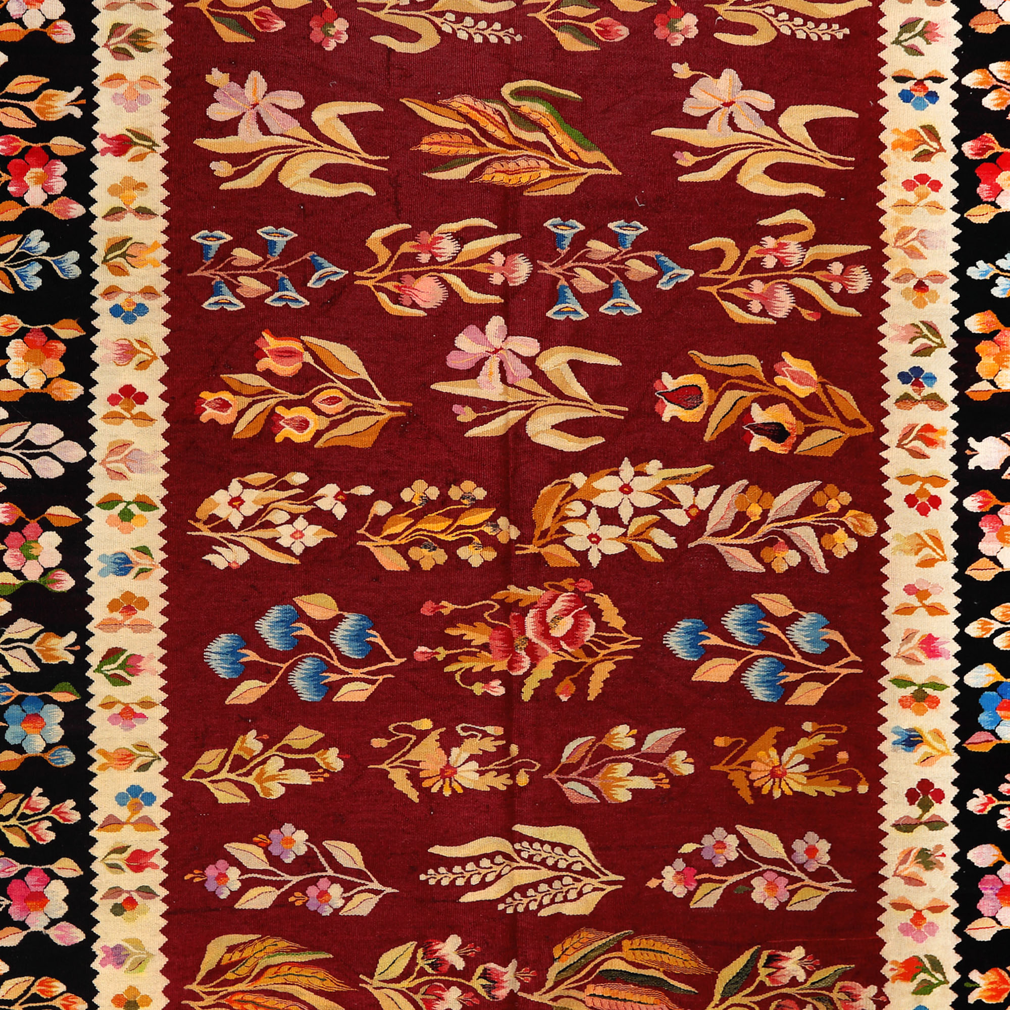 95. Covor oltenesc din lână, decorat cu motive vegetal-florale specifice alesăturilor oltenești, mijlocul sec. XX