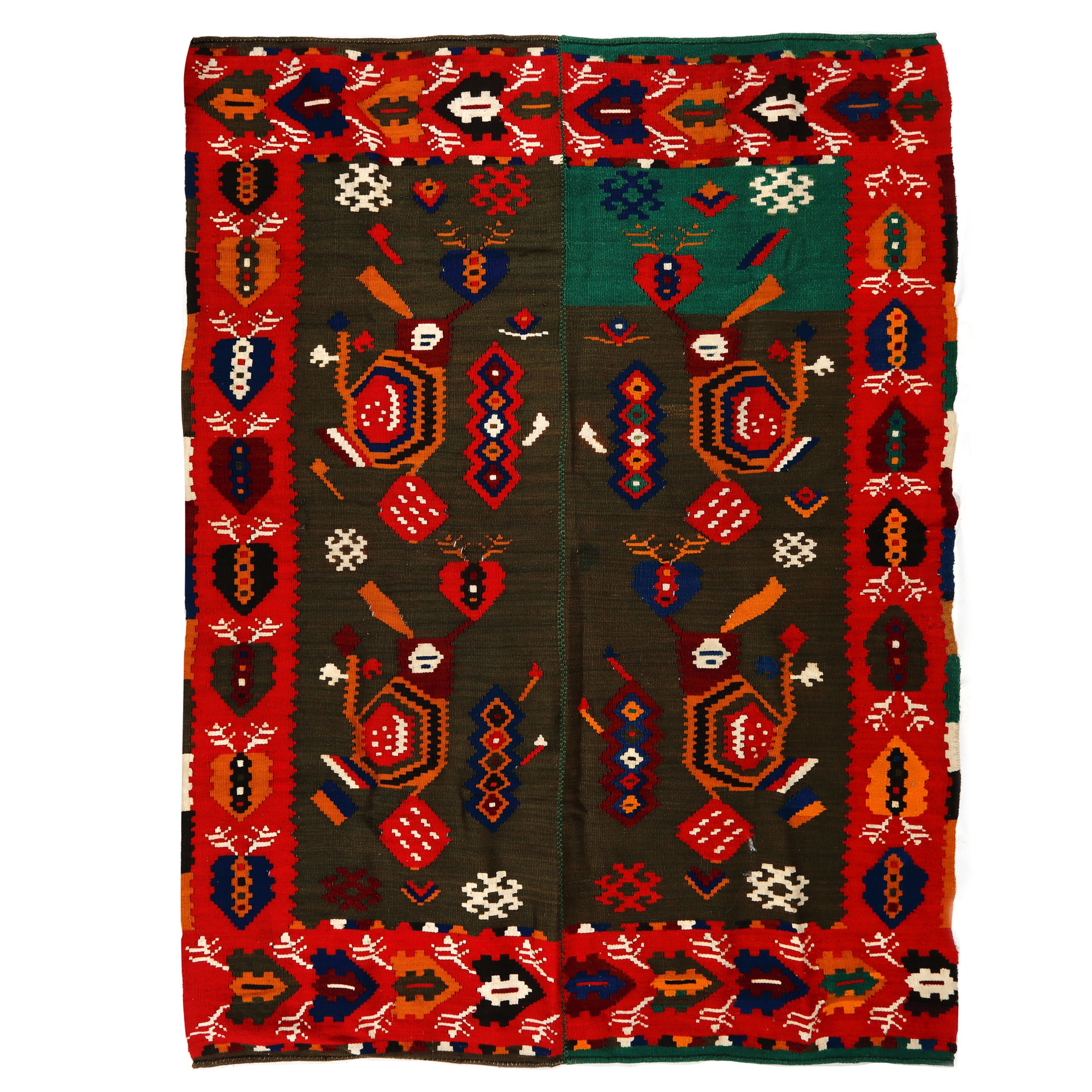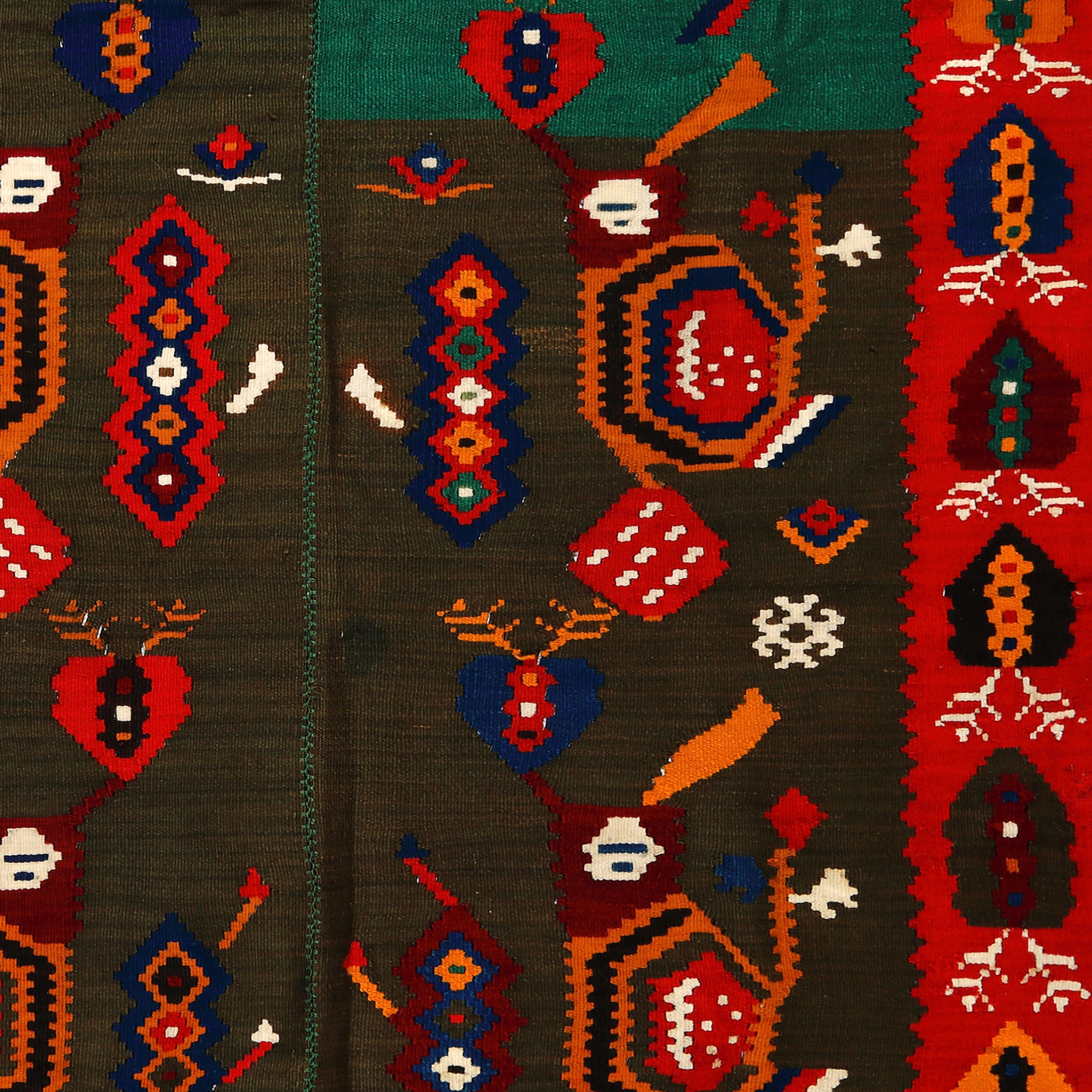 99. Covor (poneavă) bănățean, din lână, decorat cu motive tradiționale stilizate, începutul sec. XX
