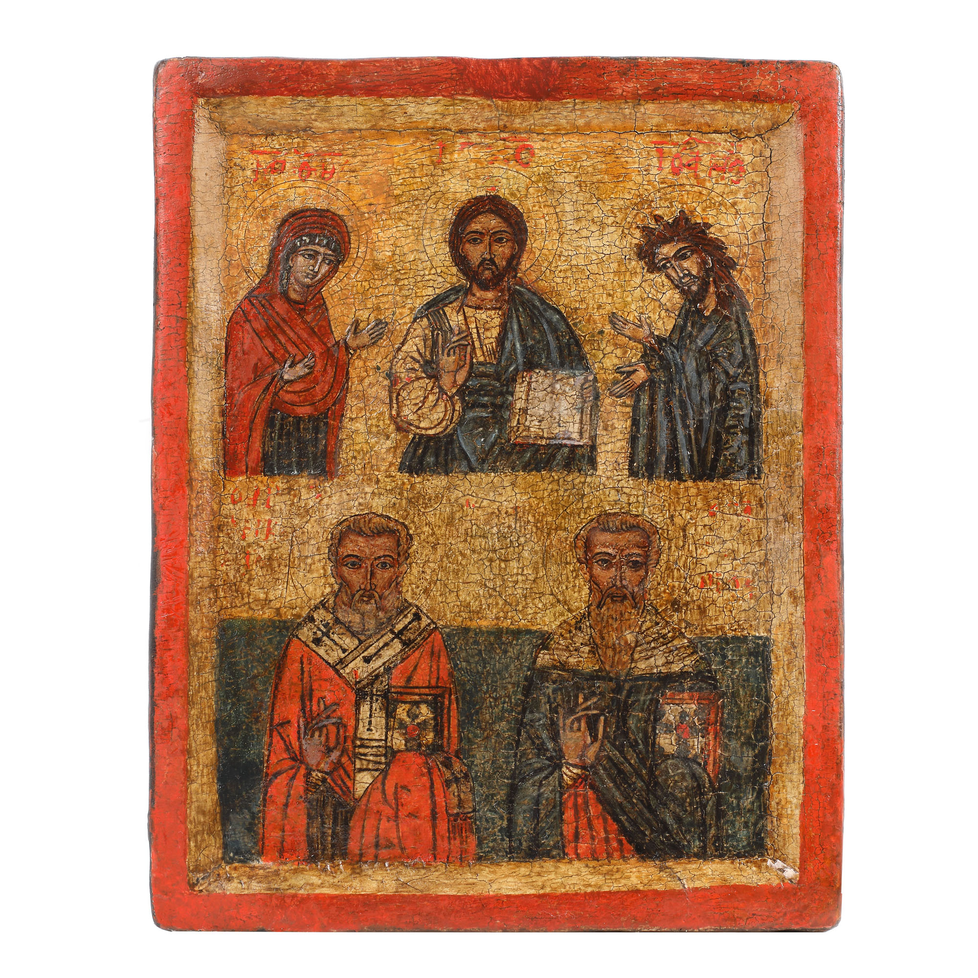 139. Icoană în două registre, ”Deisis” și doi sfinți, Țara Românească, școală post-brâncovenească, jumătatea sec. XVIII