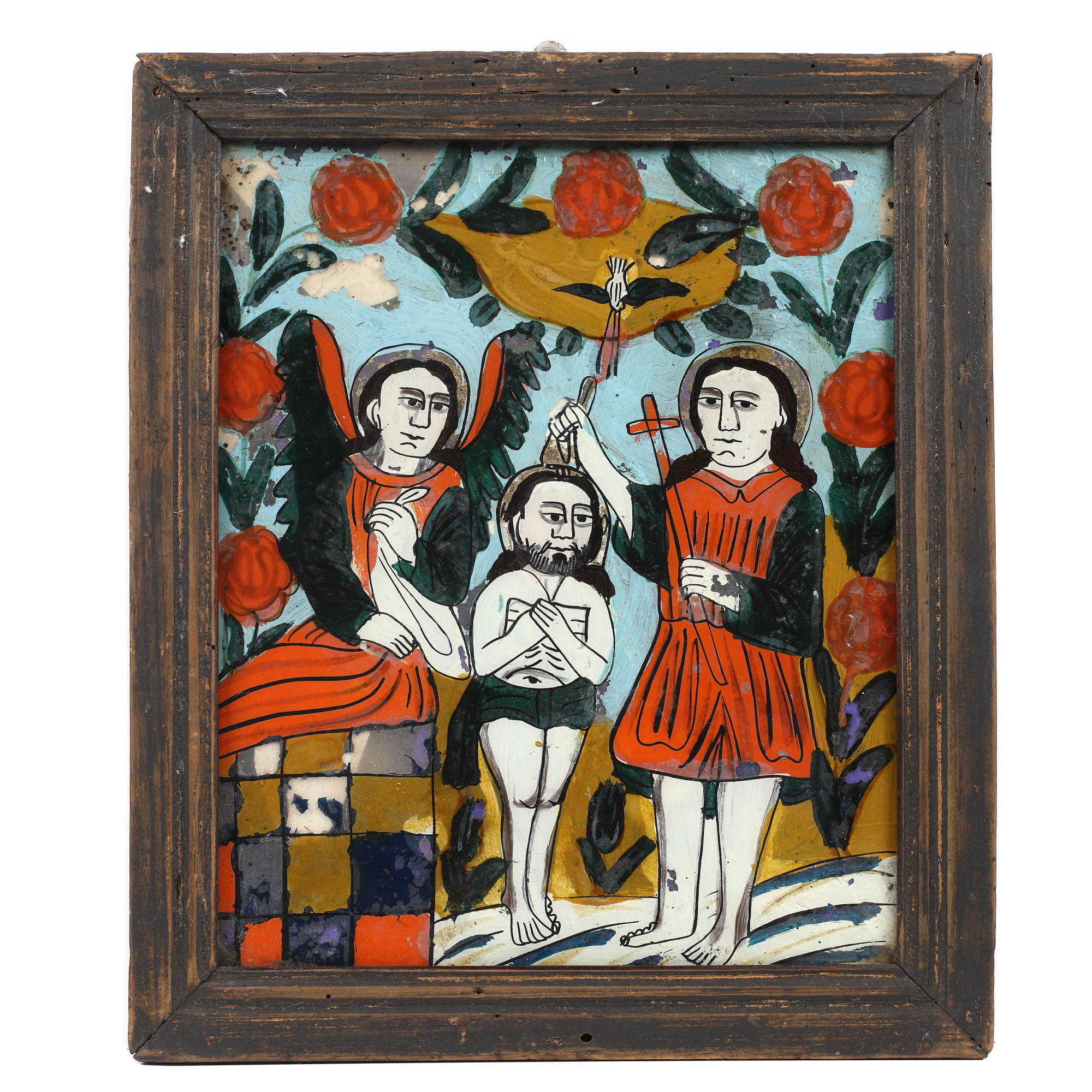 146. Icoană pe glajă, ”Botezul Domnului”, atelier din Gherla, sfârșitul sec. XIX