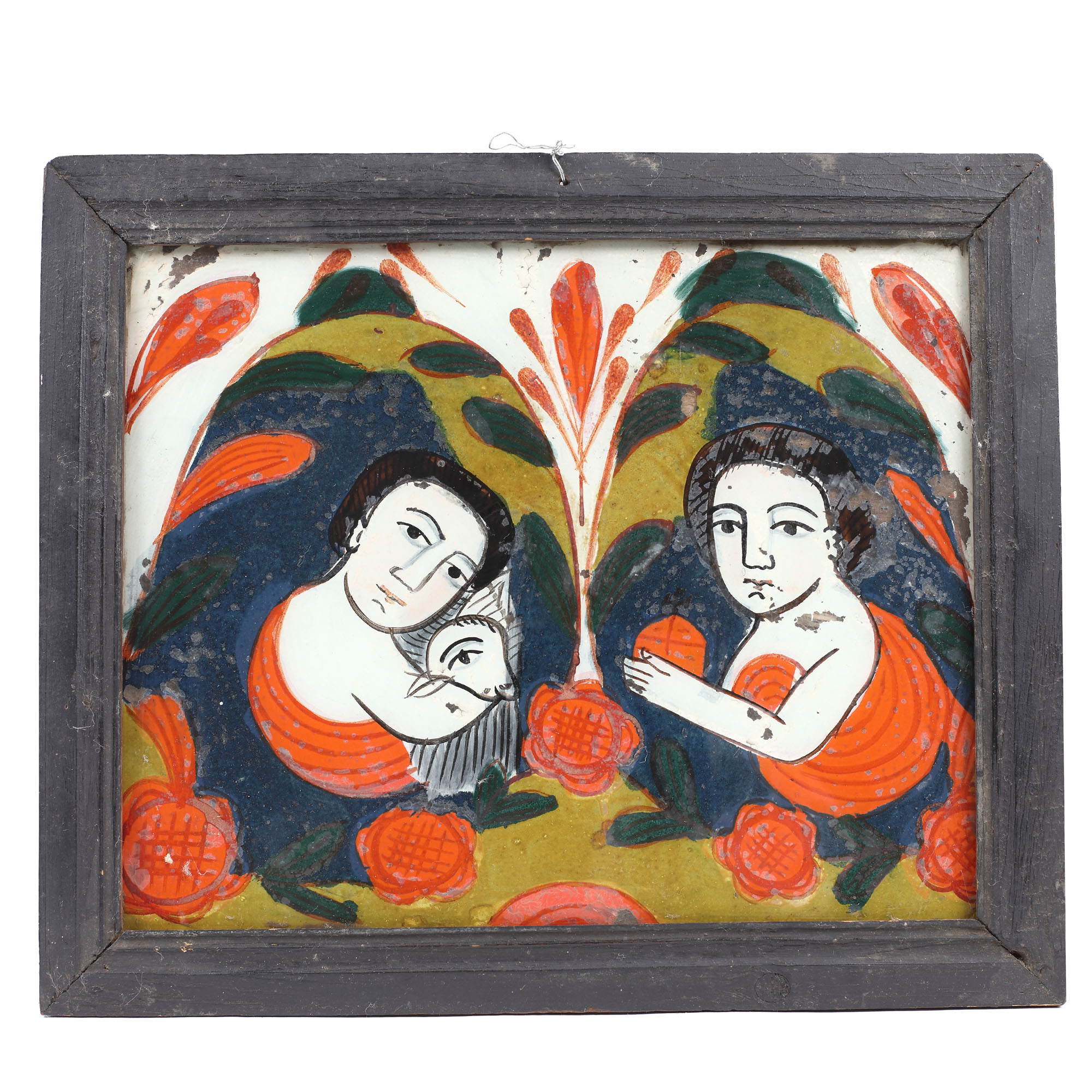 tempera pe glajă, ramă băițuită, cu șforț