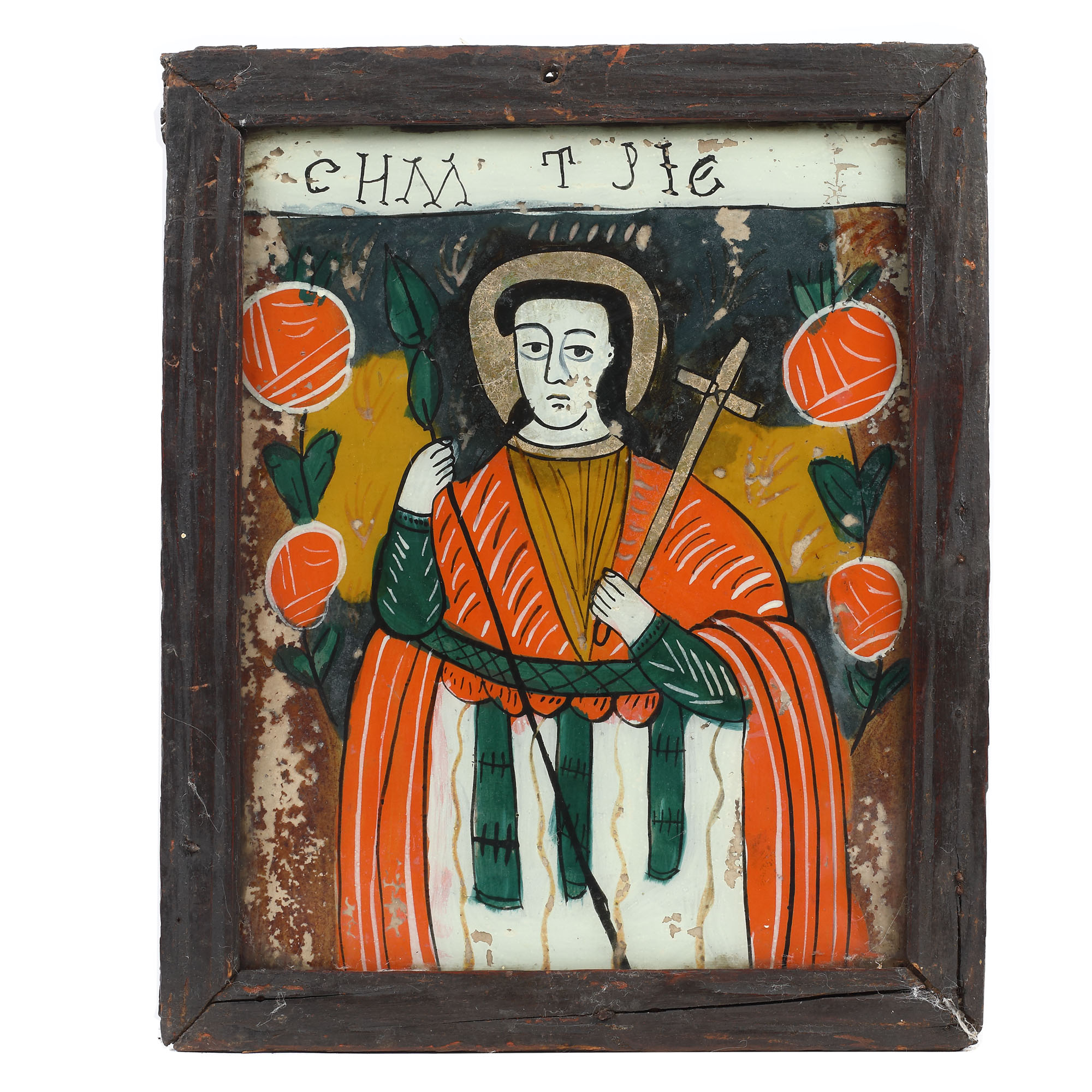 143. Icoană pe glajă, ”Sfântul Dumitru”, atelier din Nicula, deceniile de mijloc ale sec. XIX