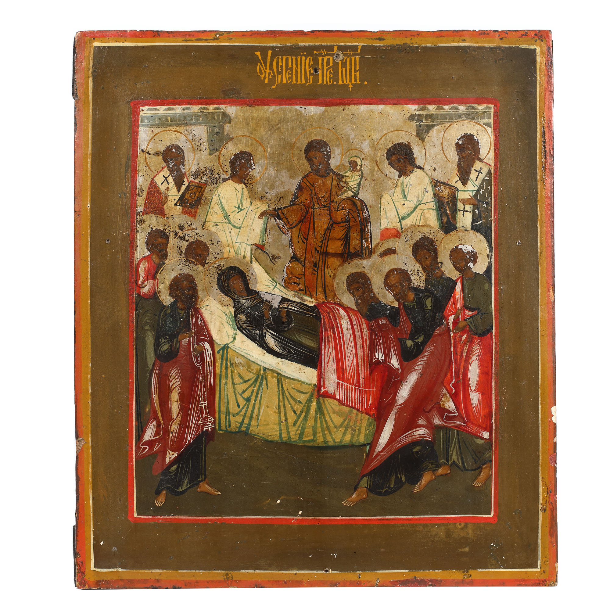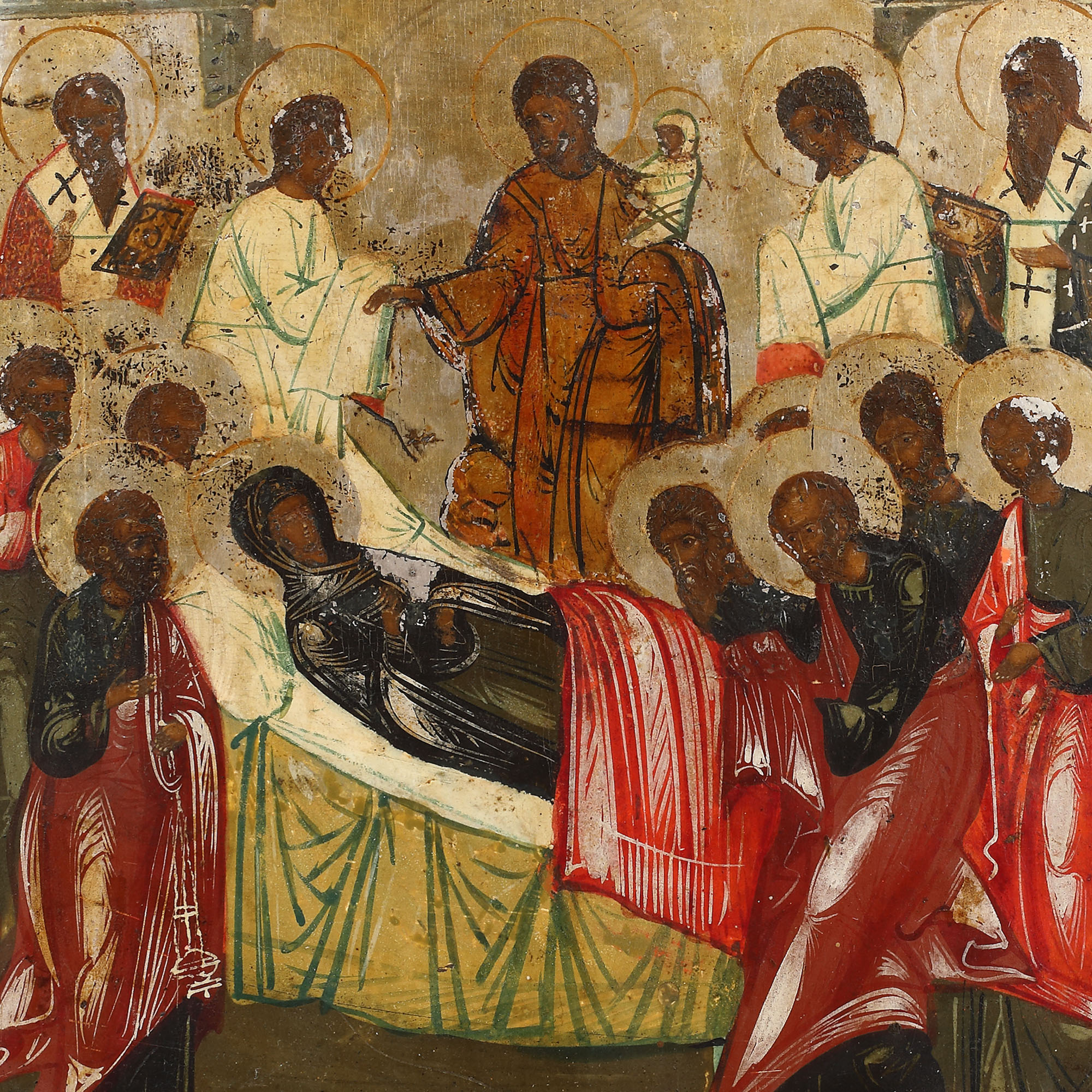 127. Icoană pe lemn, ”Adormirea Maicii Domnului”, școală rusească, sfârșitul sec. XVIII