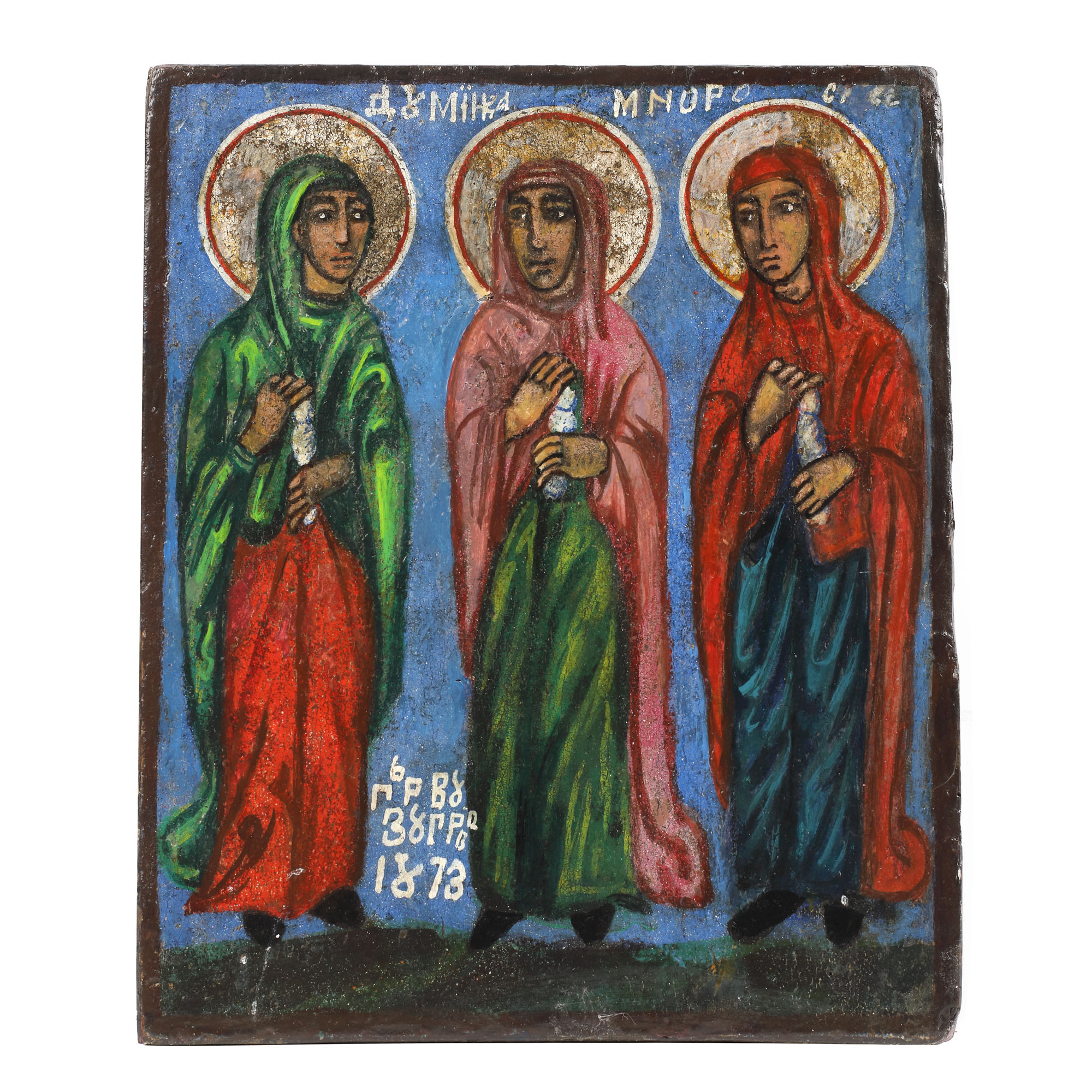 133. Icoană pe lemn, ”Sfânta Dumitra și două mucenițe”, zugrav Pârvu, 1873