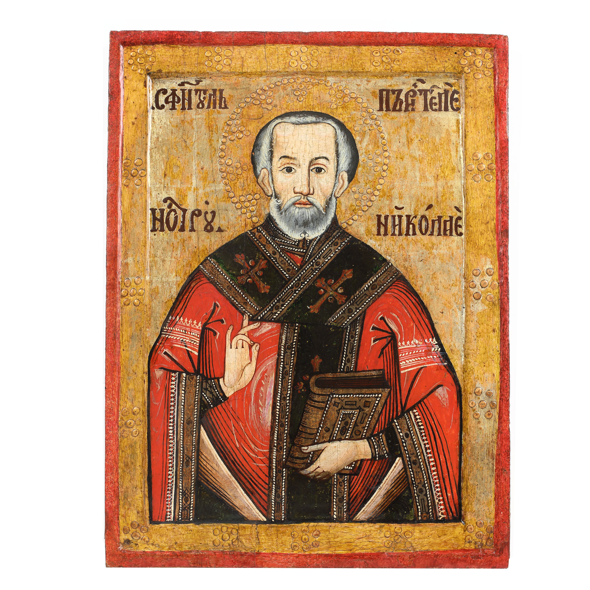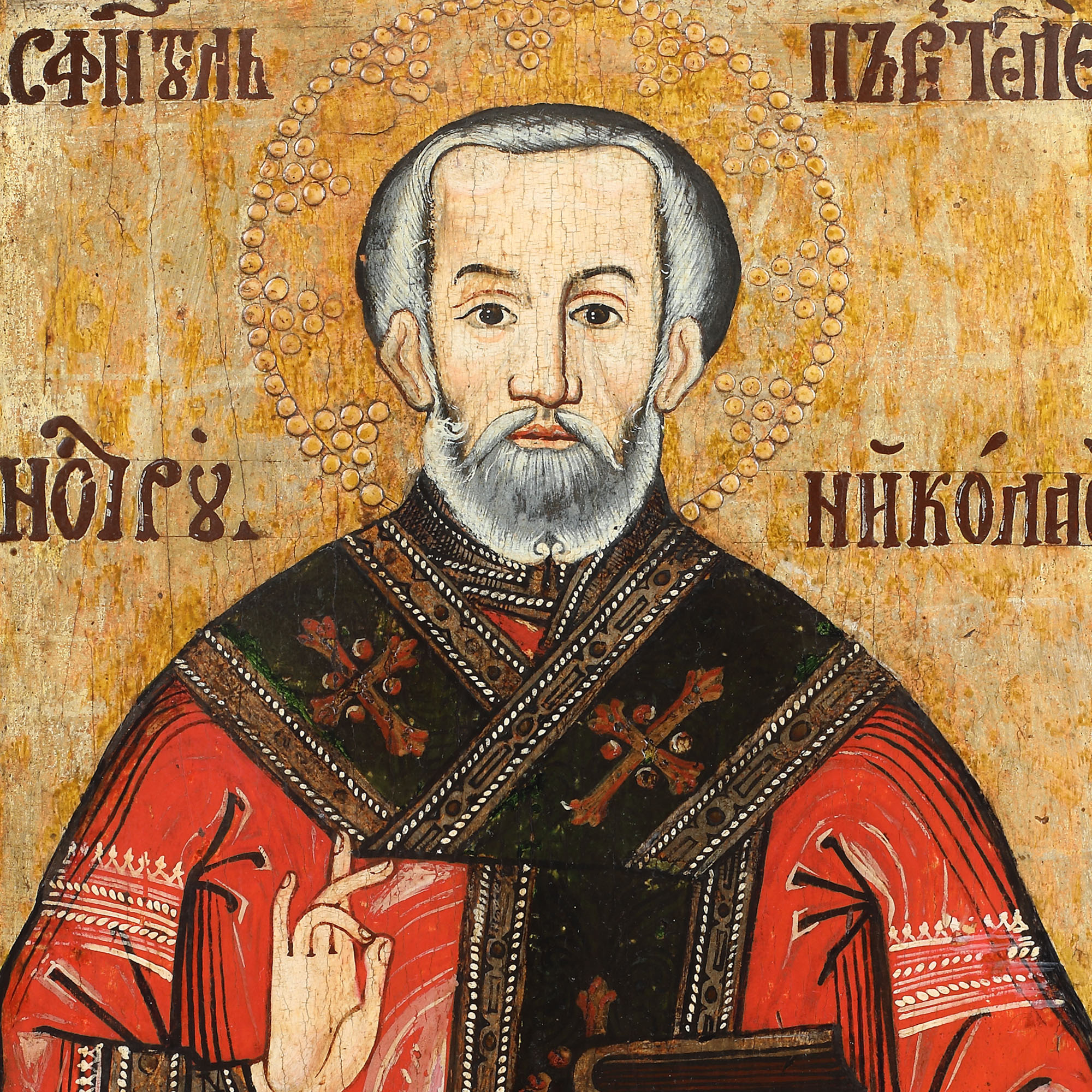 91C. Icoană pe lemn, ”Sfântul Nicolae”, atribuit zugrav Popa Nicolae din Feisa, a doua jumătate a sec. XVIII, raritate extremă, de colecție