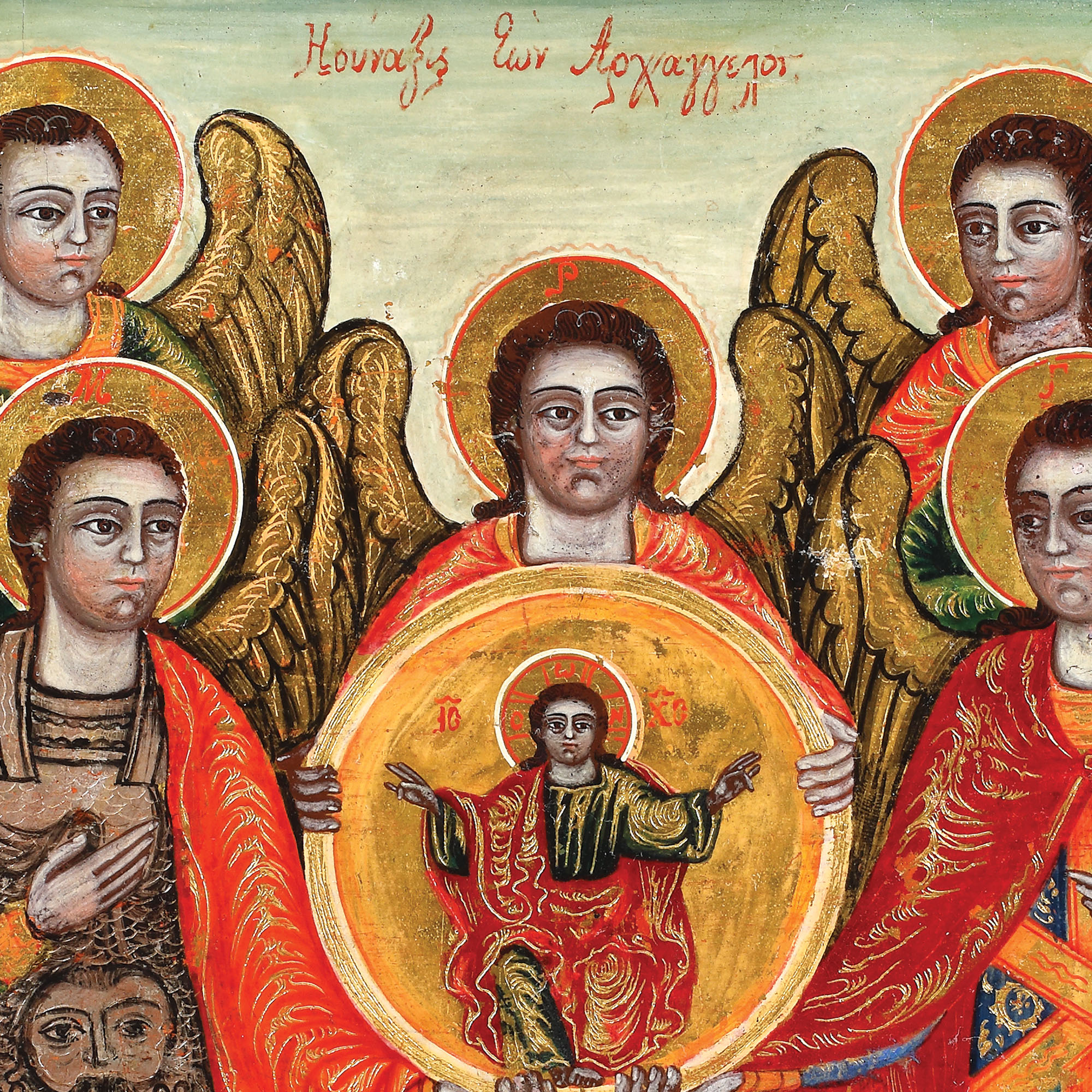 129. Icoană pe lemn, "Soborul Sfinților Arhangheli", școală grecească, începutul sec. XIX