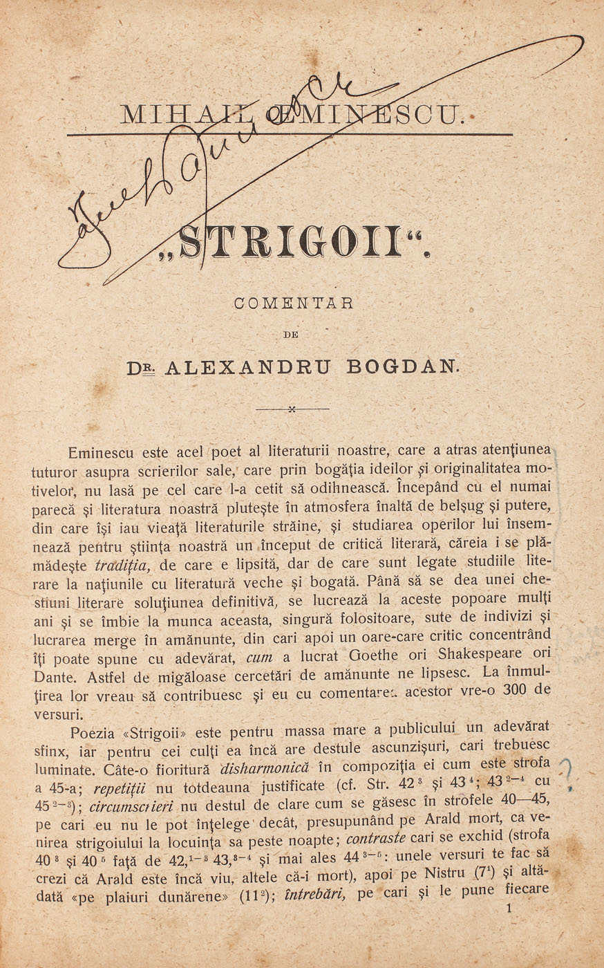 232. Mihai Eminescu, "Strigoii", ediție comentată de Alexandru Bogdan