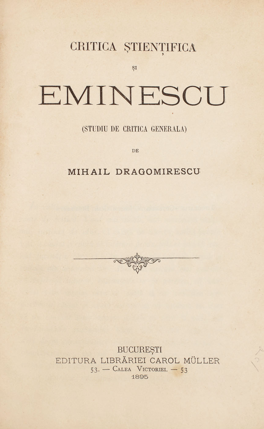 270. Mihail Dragomirescu, "Critica știențifică și Eminescu, studiu de critică generală", 1895