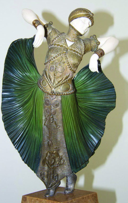 În 1924, Nicolae Vermont era un nume de referință pentru pictura românească interbelică, fapt neschimbat până astăzi. Senior al vieții artistice (la aproape 60 de ani), pictorul își respecta eticheta, expunând aproape an de an la Tinerimea Artistică, societate în ale cărei jurii se aflase încă de la apariția ei. Artist respectat în breasla pictorilor, membru al primei Secesiuni artistice românești (1896), Vermont deținea un statut important în mediul cultural, fapt confirmat și de prezența sa în cadrul expoziției românești de la Bienala de la Veneția din 1924. Vermont participa atunci alături de alți 25 de pictori în interiorul Pavilionului Central, fiindu-i alese de către Arthur Verona (comisar al expoziției) două opere - „În fața oglinzii” și „Portretul fiicei mele”. Un lucru interesant de menționat este faptul că, la expoziția societății Tinerimea Artistică din același an, Vermont expunea alături de fiica sa, Margot, pictoriță dar și model al tatălui ei. Tinerimea Artistică a reprezentat pentru Vermont ocazia celor mai importante expuneri din cariera sa, biografia acestuia punctând destul de puține expoziții personale. Așa se explică și număr impresionant de opere cu care pictorul participa constant, având chiar ediții în care expunea peste 30 de lucrări. Nici anul 1924 nu făcea notă discordantă, Vermont regăsindu-se pe simezele expoziției cu 24 de opere, atât ulei, cât și gravură. În ceea ce privește opera de față, pictată în același an 1924, descoperim una dintre cele mai originale aspecte produse de imaginarul lui Vermont în cei mai bine de 40 de ani de carieră. Chiar dacă opera se regăsește sub mantaua mai largă a compozițiilor de interior (scene de gen), unicitatea tabloului este oferită de pitorescul vestimentar. Modelul este surprins într-un costum inedit, de dansatoare (probabil orientală) și este plasat într-o atmosferă tipică spectacolului - cabina de probă. Însă accentul este clar pus doar pe personaj, farmecul și senzualitatea fiind elocvente. Amintind de Dansatoarele asiriene ale lui Chipăruș sau de portretizările Zobeidei în baletul Scheherazada, Dansatoarea lui Vermont pare extrasă dintr-un univers idilic oriental, însă transpusă în mondenitatea europeană, regăsindu-se în gustul Art Deco al vremurilor. Chiar dacă greu de identificat, având în vedere incertitudinea paternității costumului, putem presupune că opera de la cat. 134 în catalogul Tinerimii Artistice din 1924, sub titlul „În costum turcesc” poate fi opera de față. De altfel, opera impresionează prin senzualitate și prin alegerea cromatică, fiind lesne de presupus că Vermont ar fi expus această operă în suita de opere prezentate în anul 1924. (I.P.)