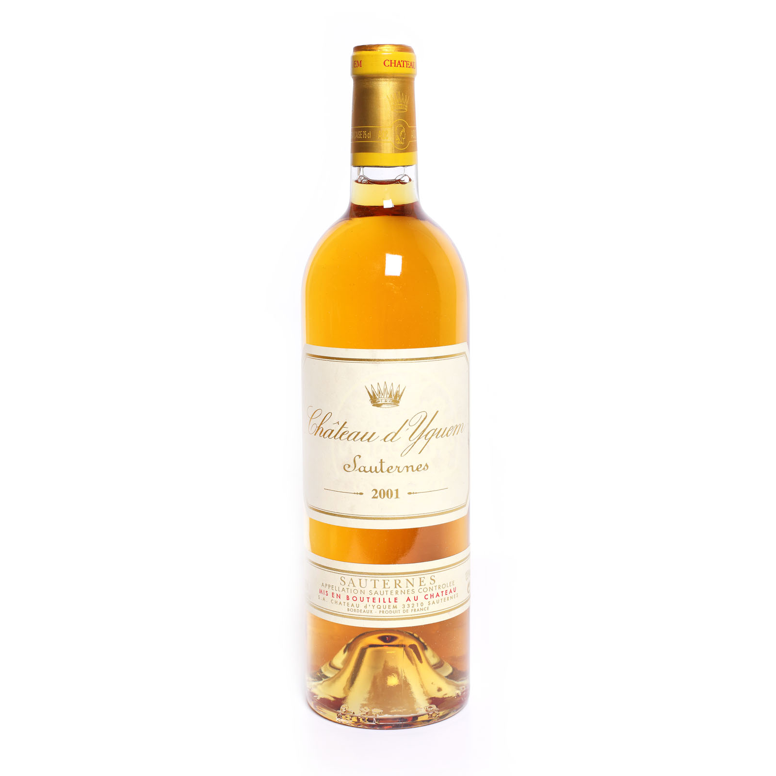 Un vin excepțional, ce a obținut 100 de puncte Parker. În prezent proprietate a lui Bernard Arnaud - Groupe LVMH - Château d'Yquem este considerat cel mai bun vin dulce botritizat din lume. Este produs doar în anii în care strugurii ajung la calitatea perfectă, iar când acest lucru nu se întâmplă, Château d'Yquem nu există. 2001 a fost unul dintre anii de excepție, iar orizontul de maturare a acestui vin este foarte larg, catre a doua jumătate de secol 21. Château d'Yquem este o investiție sigură, cu valoare în continuă creștere, și unul dintre vinurile care a doborât recorduri de preț la vânzarea prin casele de licitații (12 st de Yquem 1929 vândute de câtre Christies cu peste 72.800 dolari în 2012, pe o valoare inițial estimată la 9.500 - 13.000 dolari). Lot constituit dintr-o sticlă de 75 cl.