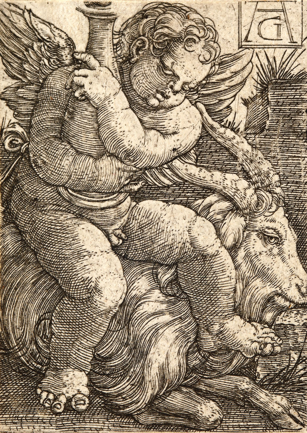 semnat, gravat, dreapta sus, în monogramă, "AD"