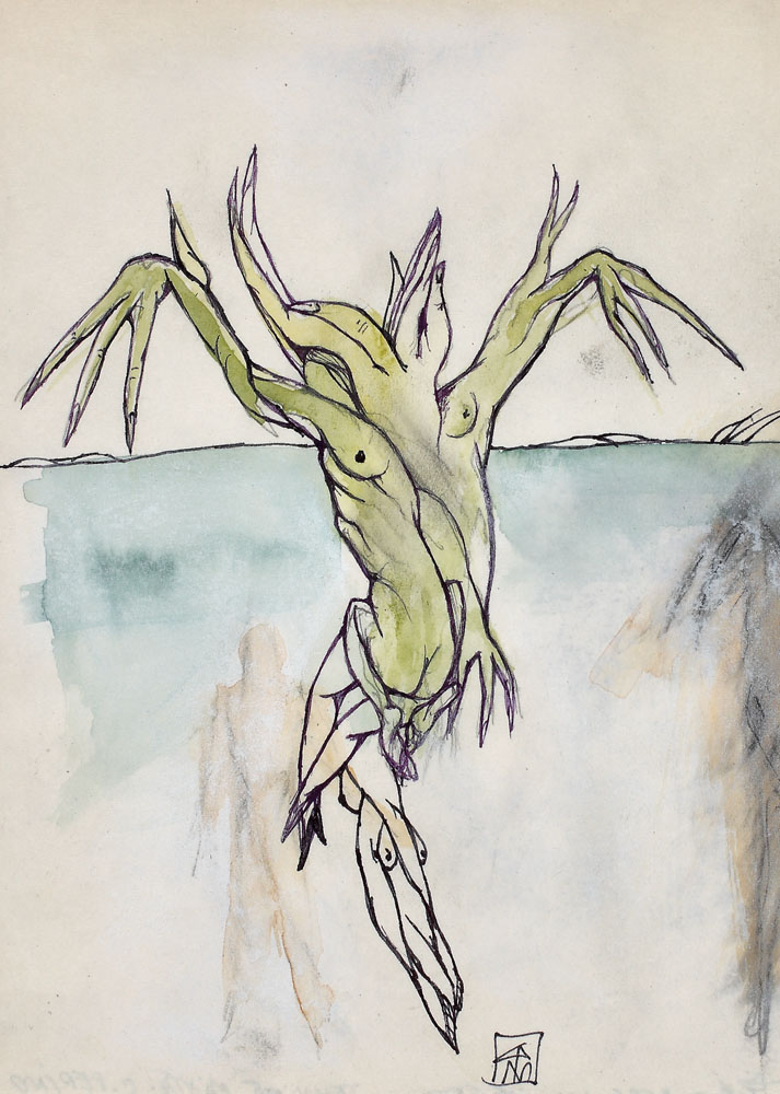 acuarelă, pix şi tuş pe hârtie