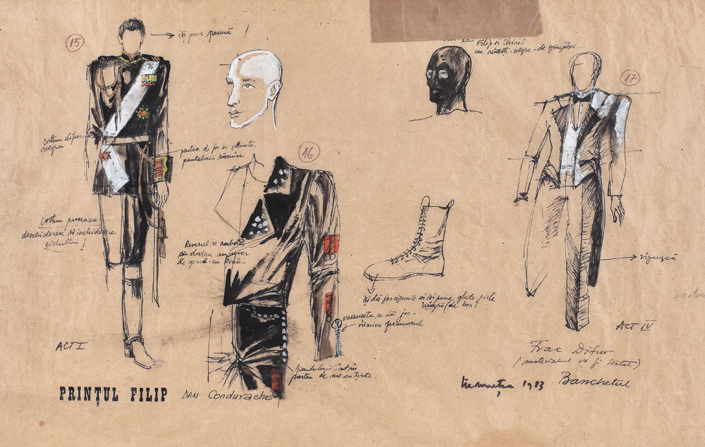 41. Schiță de costume pentru spectacolul „Ivona, principesa Burgundiei”, de Witold Gombrowicz, regia Catalina Buzoianu, Teatrul Mic, Bucureşti, provine din colecția artistei [1983]