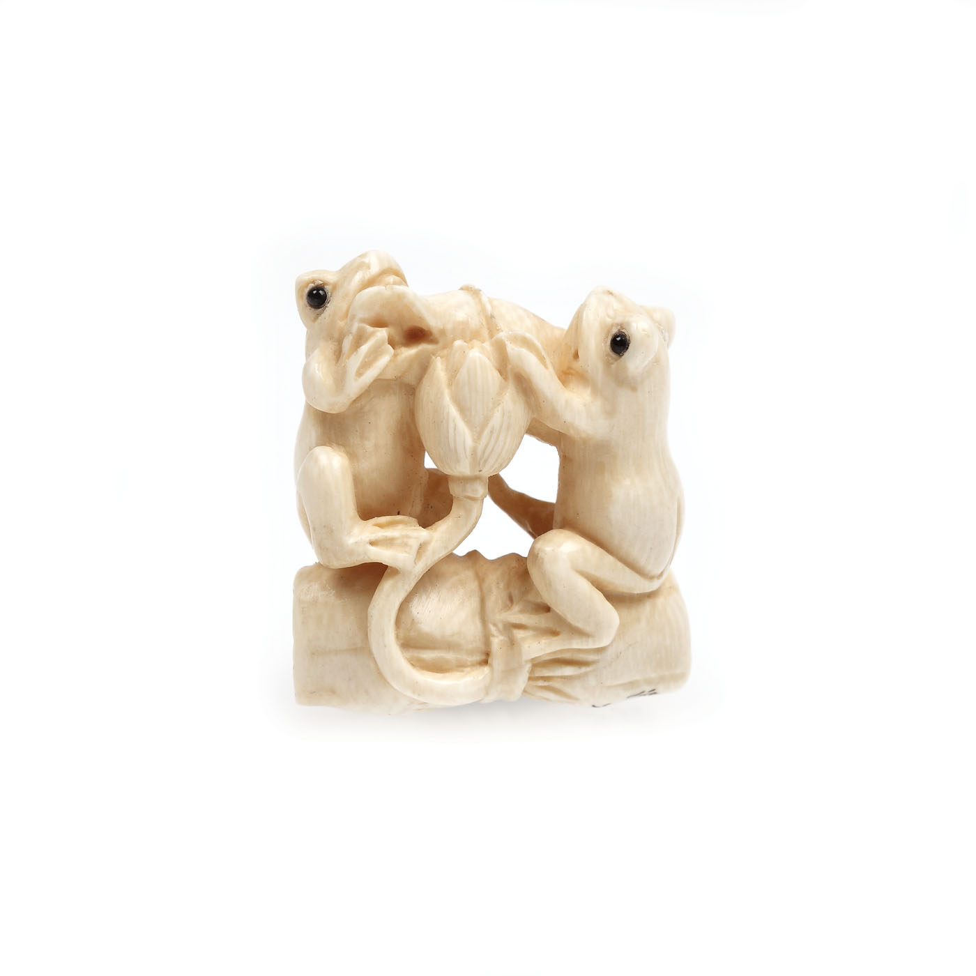 227. Netsuke din fildeş, o pereche de broscuțe mâncând