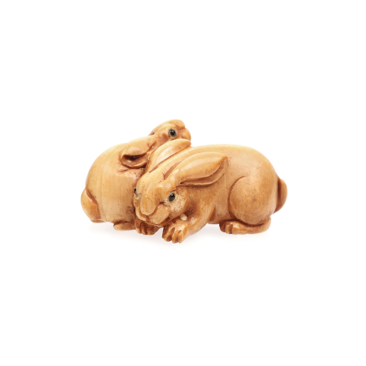 224. Netsuke din fildeş, o pereche de iepuraşi