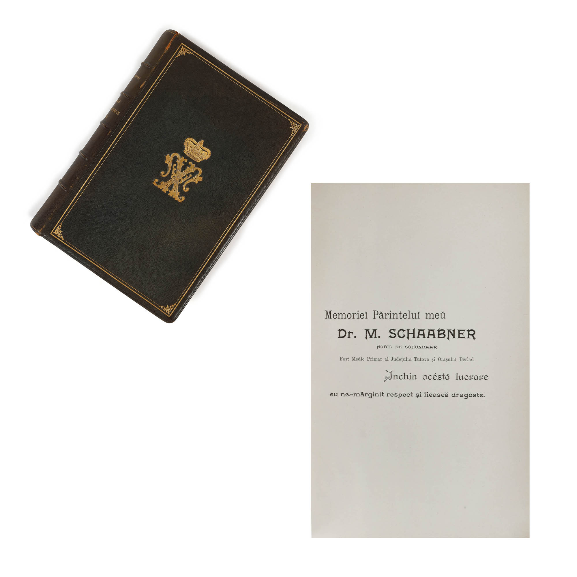 Legătură din piele verde, pe carton, cotorul împărțit în 6 registre decorat cu numele volumului si al autorului. Coperata unu este decorata, cu auriu, cu un chenar simplu și unul cu elemente art deco, coroana regală și efigia regelui Ferdinand, iar coperta patru este decorata cu auriu, cu stema României, dinainte de Marea Unire.