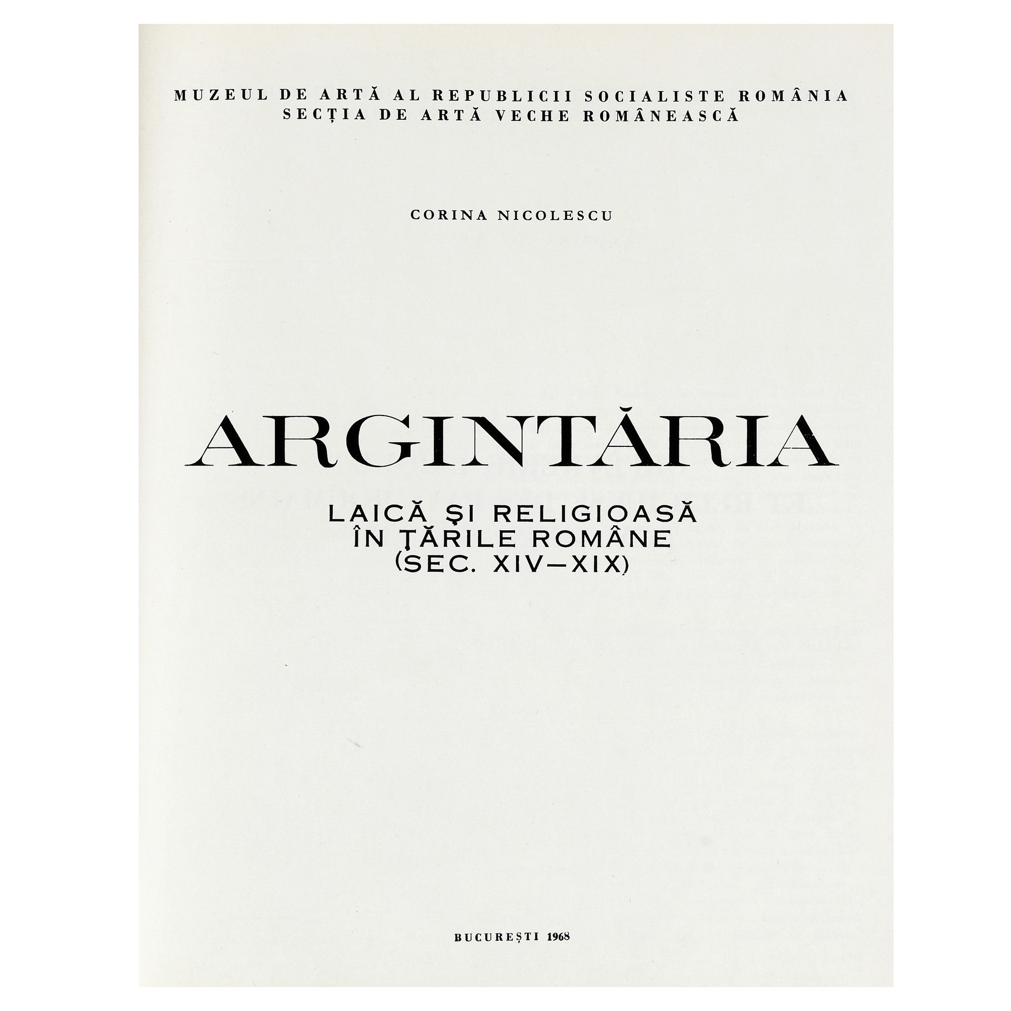 175. ”Argintăria laică și religioasă în Țările Române (sec. XVI-XIX)”, de Corina Nicolescu, București, 1968