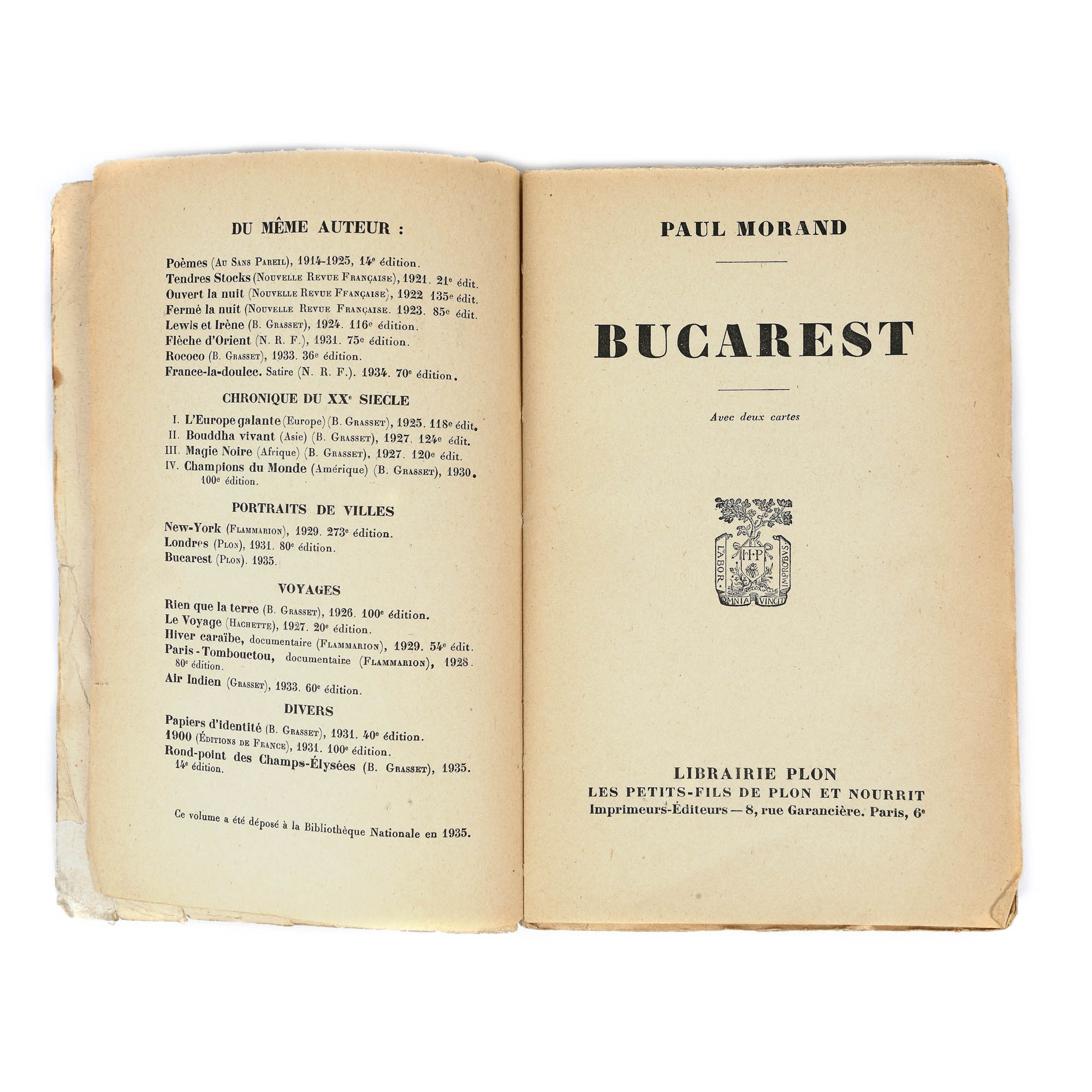 167. ”București”, de Paul Morand, franceză, Paris, 1935