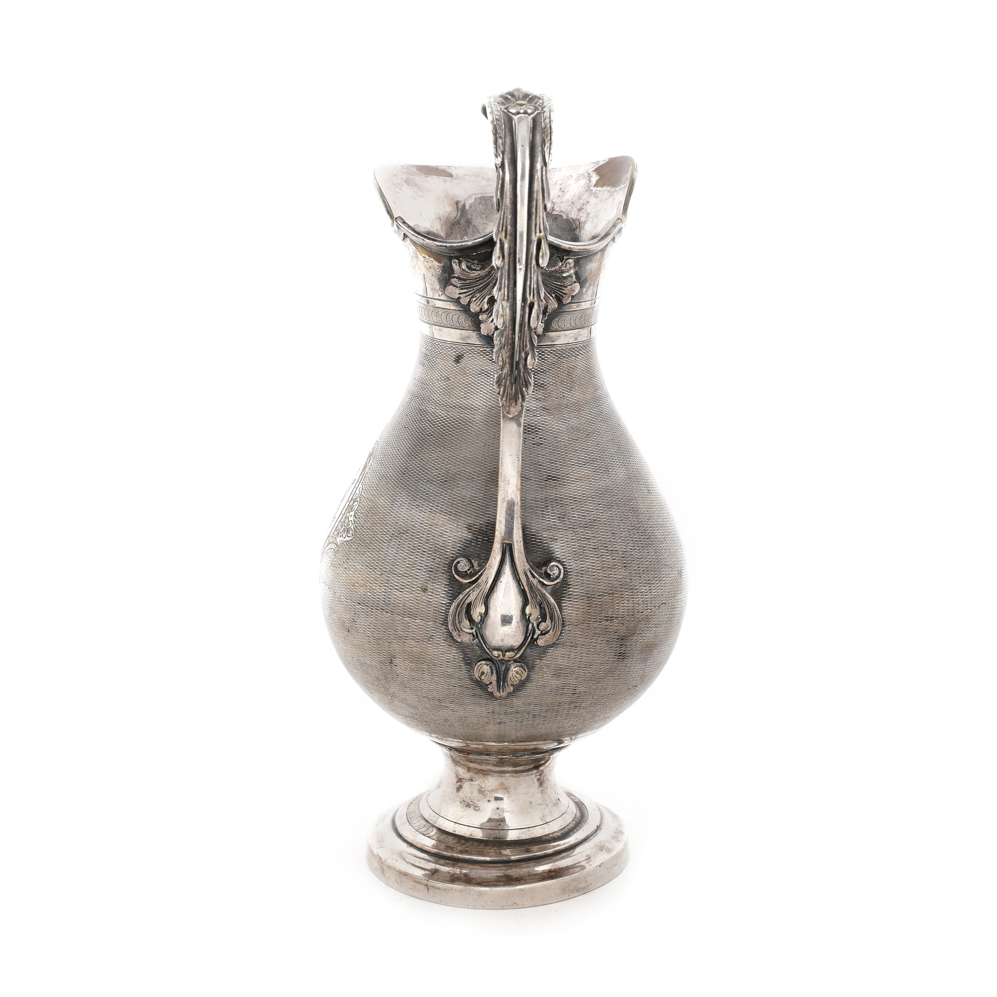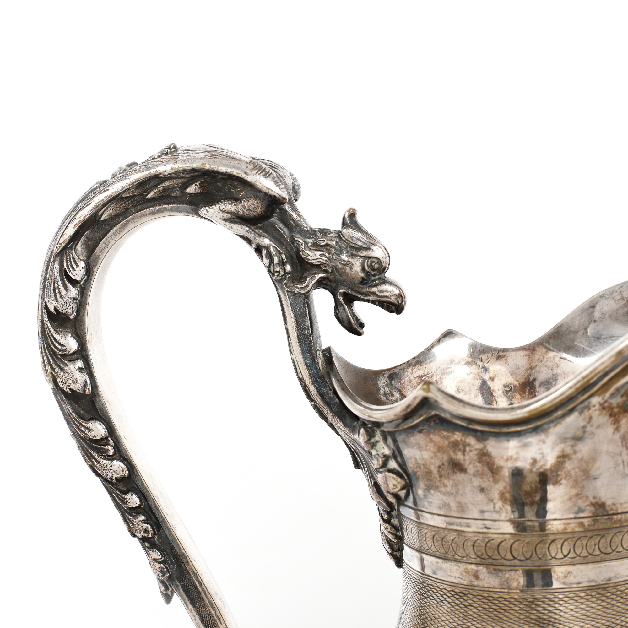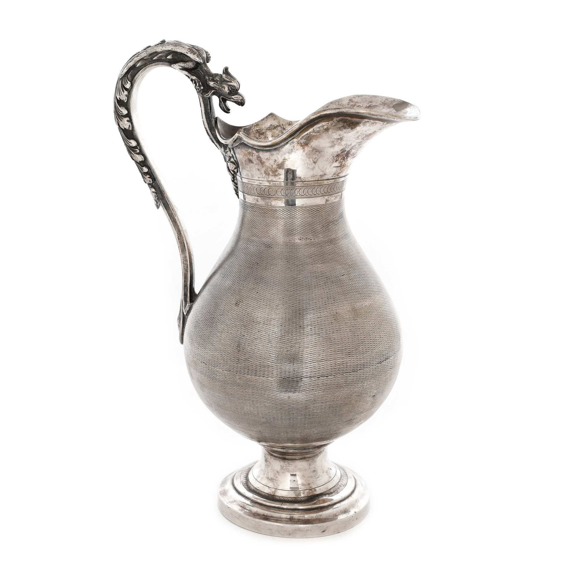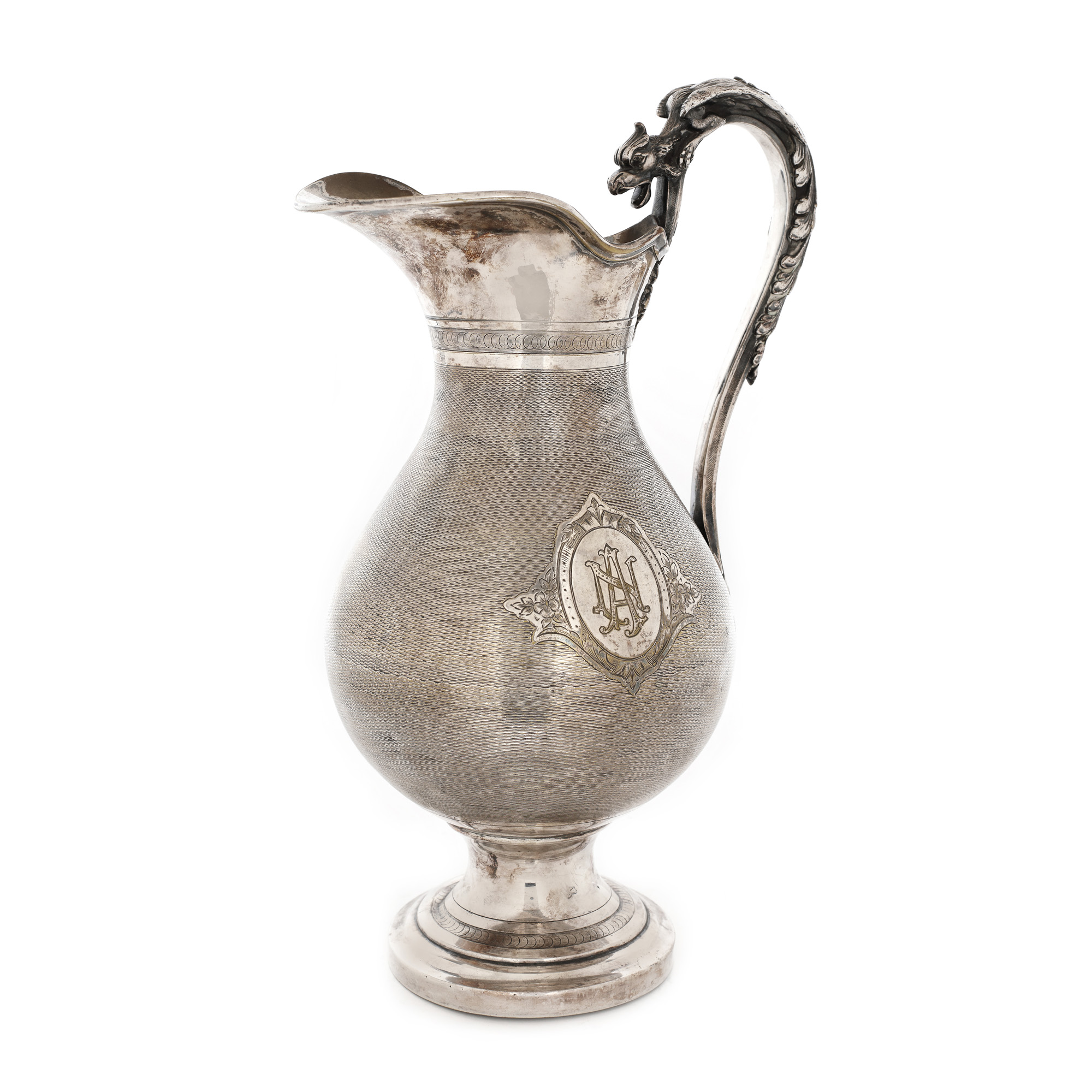 120. Carafă ornată central cu monogramă în medalion și ansă în formă de grifon [Sec. XX]