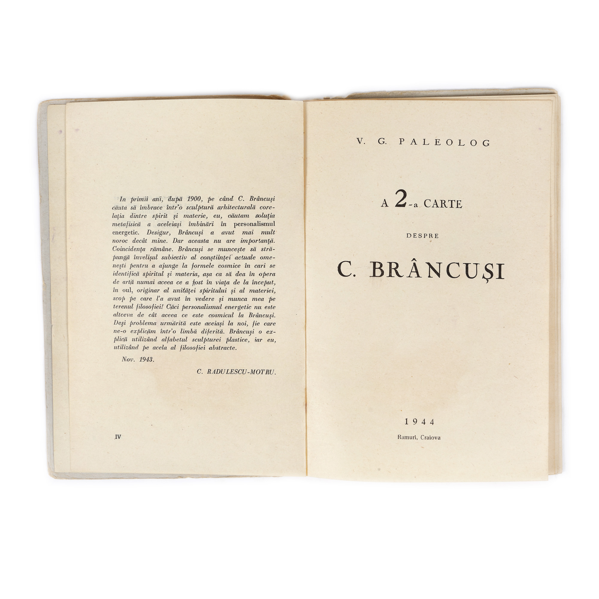 131. ”Cartea a doua despre Constantin Brâncuși”, de Vasile Georgescu Paleolog, Craiova, 1944