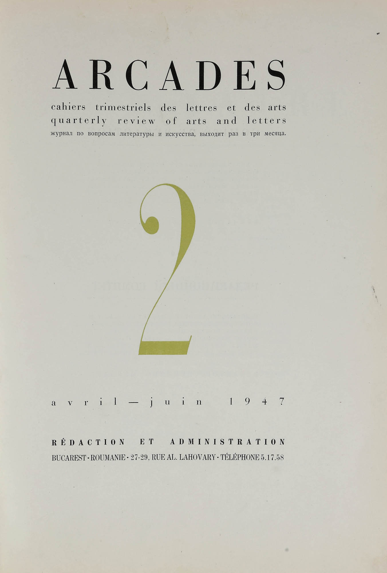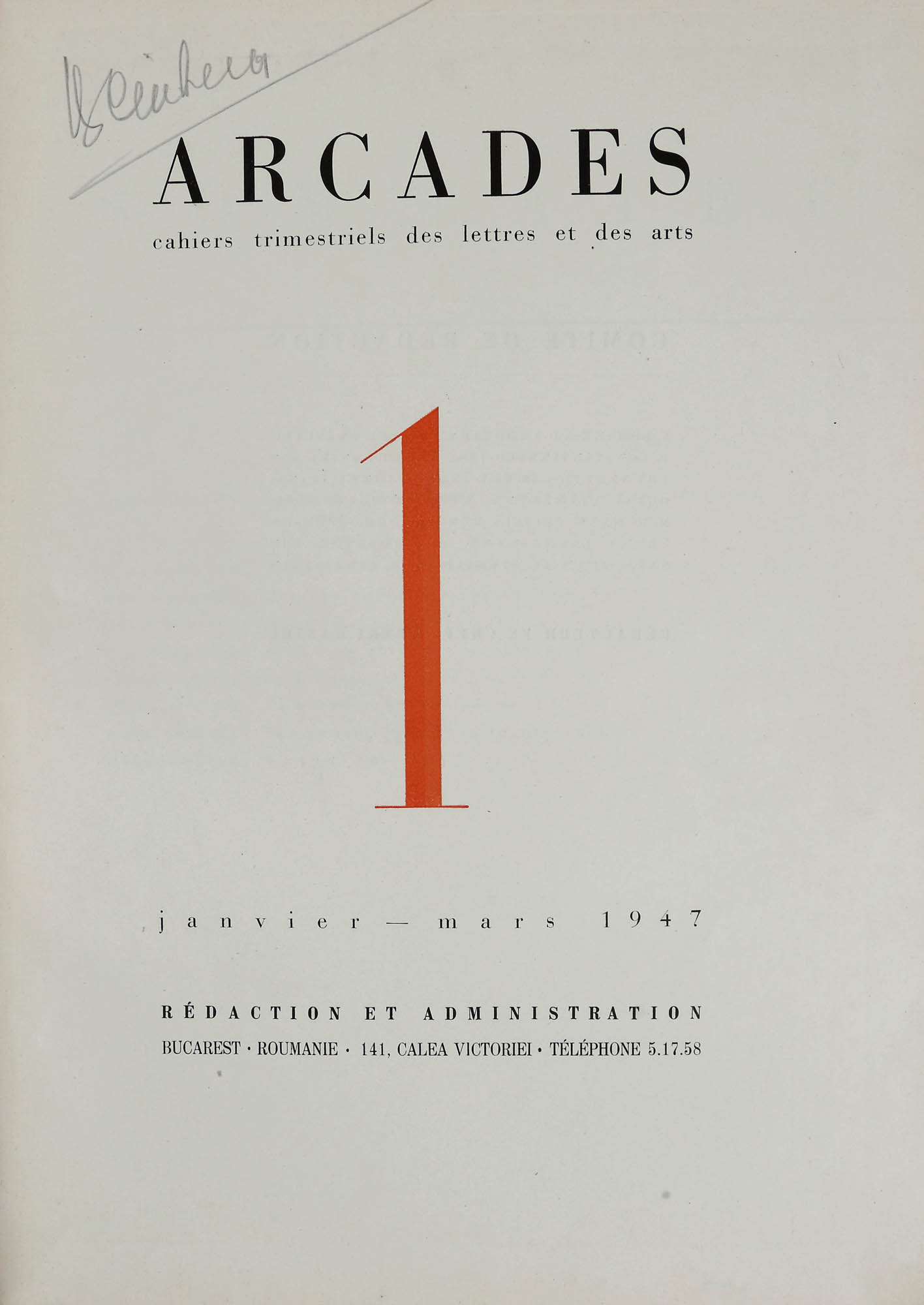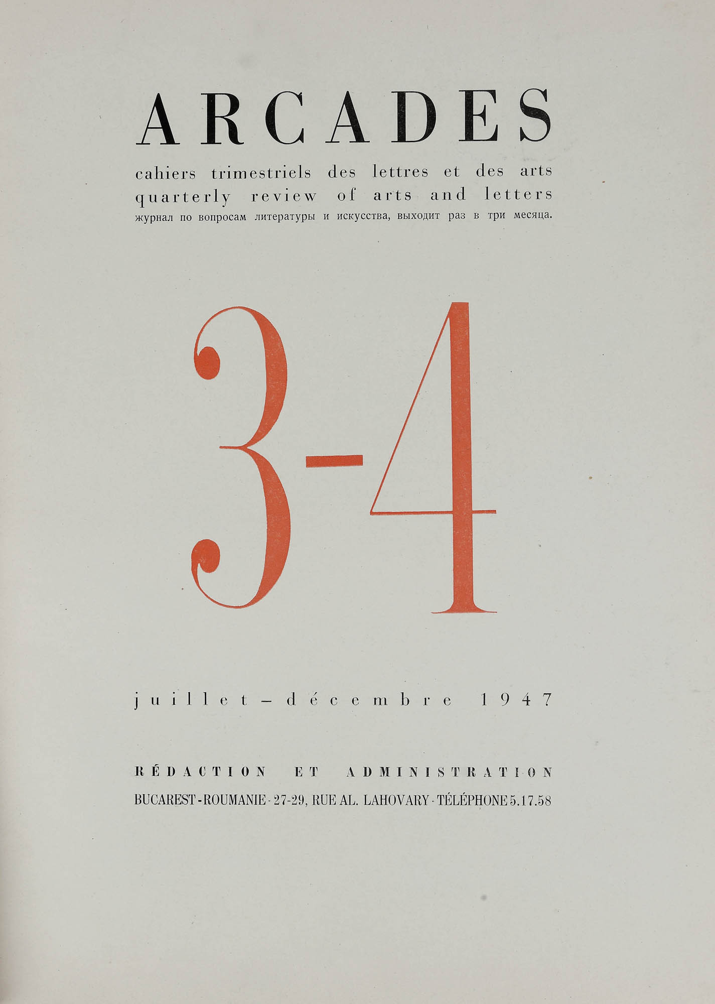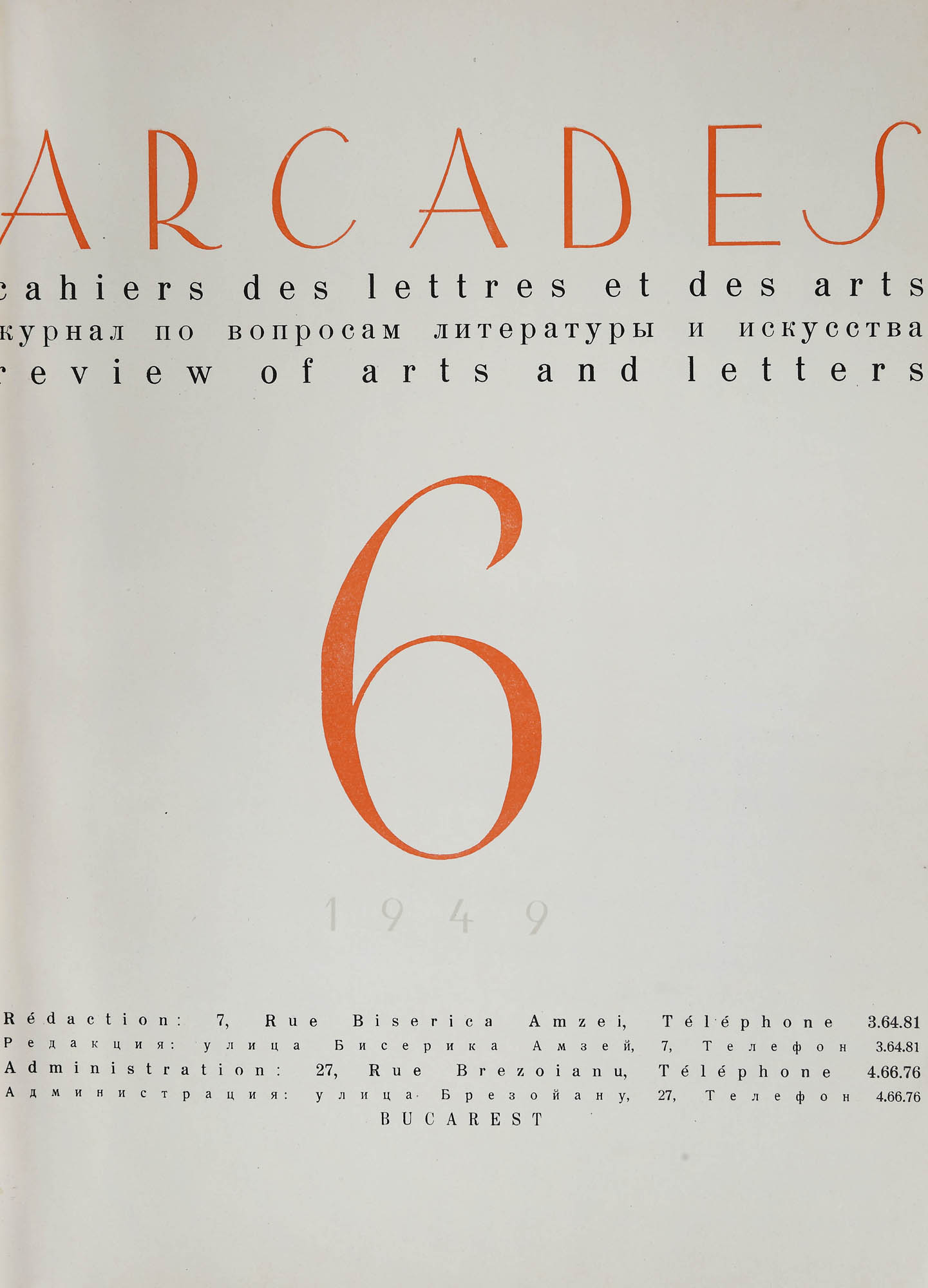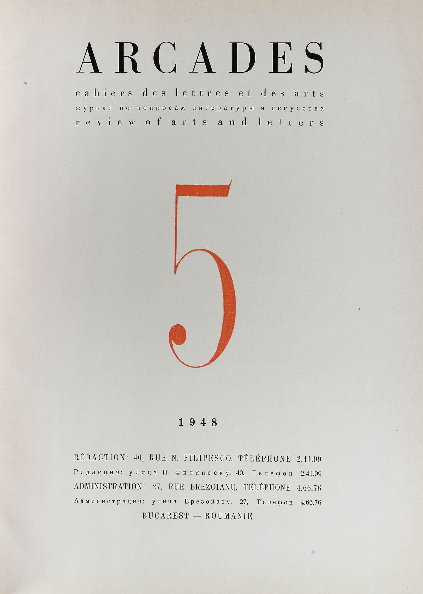 178. Colecție completă ”Arcades”, franceză, București, 1947-1949, cu o xilogravură de Vasile Dobrian, provine din colecția Moise Weinberg