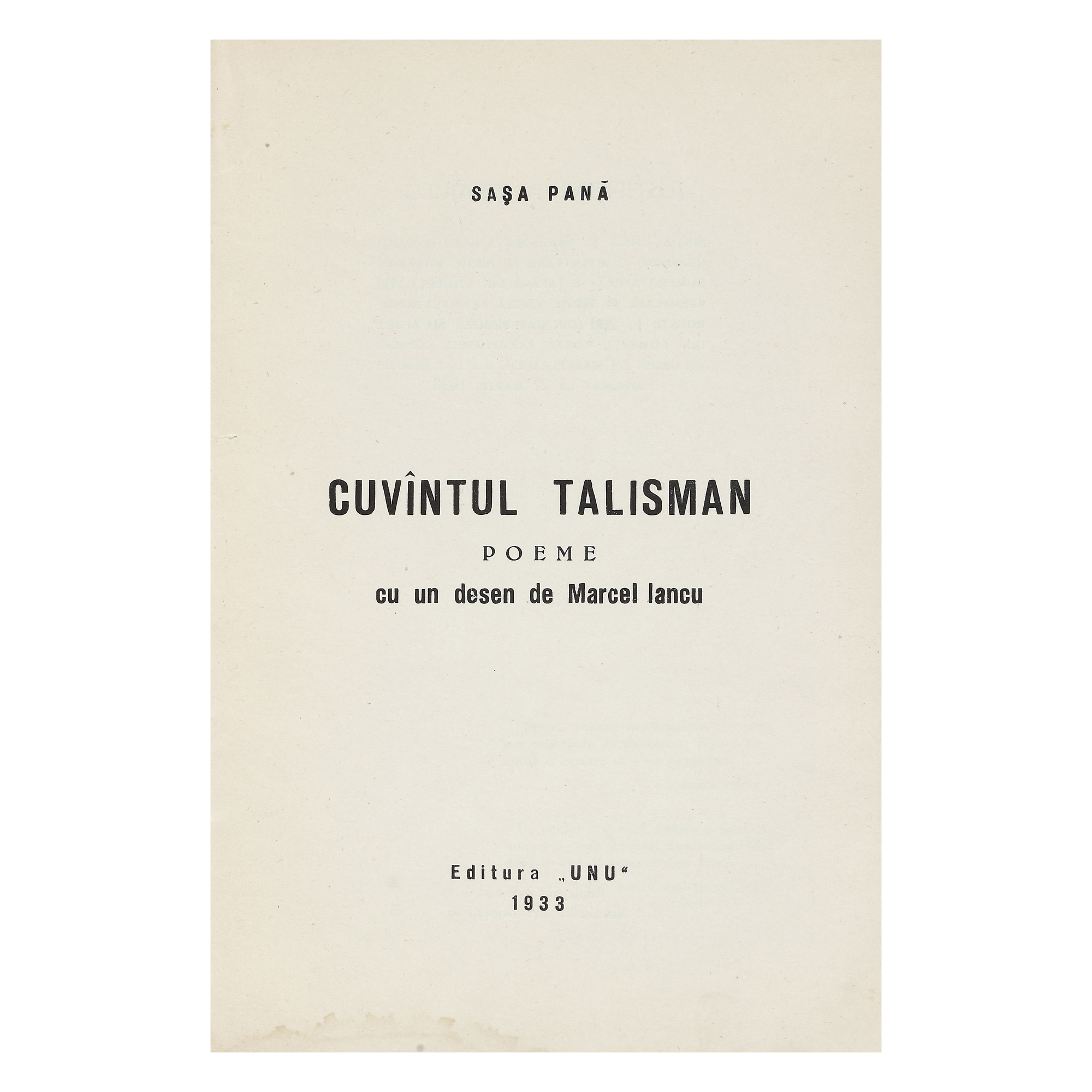 147. ”Cuvântul talisman”, de Sașa Pană, București, 1933, cu un desen de Marcel Iancu