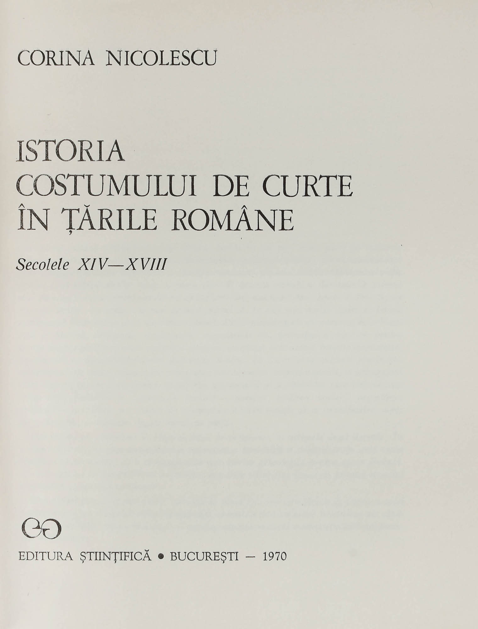174. ”Istoria costumului de curte în Țările Române”, de Corina Nicolescu, București, 1970