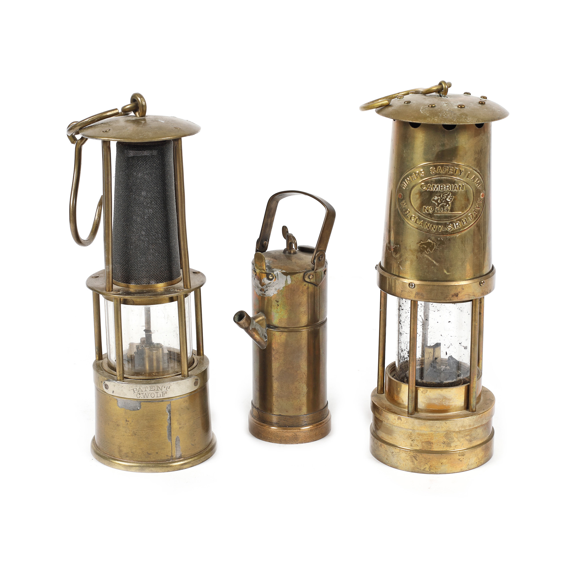 118. Lot format din trei lămpi de minerit mărcile Cambrian W.R. Clanny - Sir H. Davy și Friemann & Wolf, sfârșitul sec. XIX - începutul sec. XX