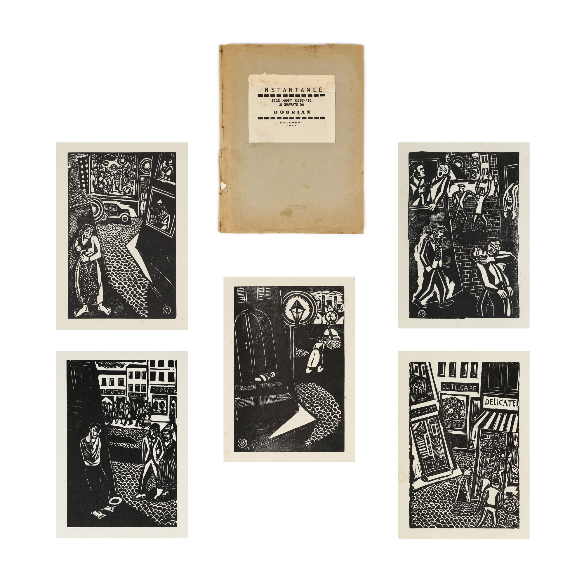 151. Mapă ”Instantanee”, de Vasile Dobrian, București, 1938, cu 10 gravuri și dedicația autorului către Geo Bogza