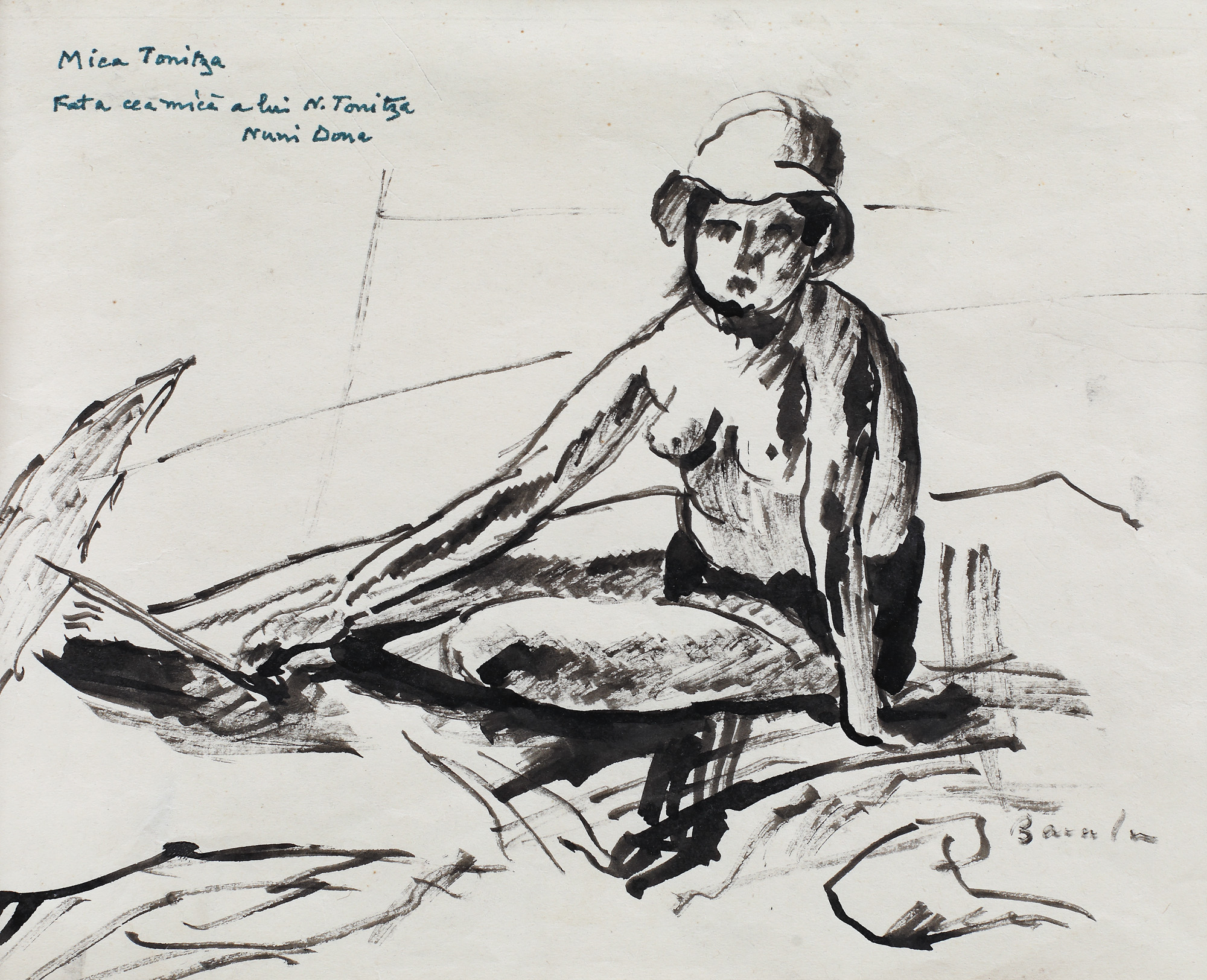 semnat dreapta jos, cu negru, "Bacalu"; intitulat și notat stânga sus, cu negru, "Mica Tonitza, Fata cea mică a lui N. Tonitza"