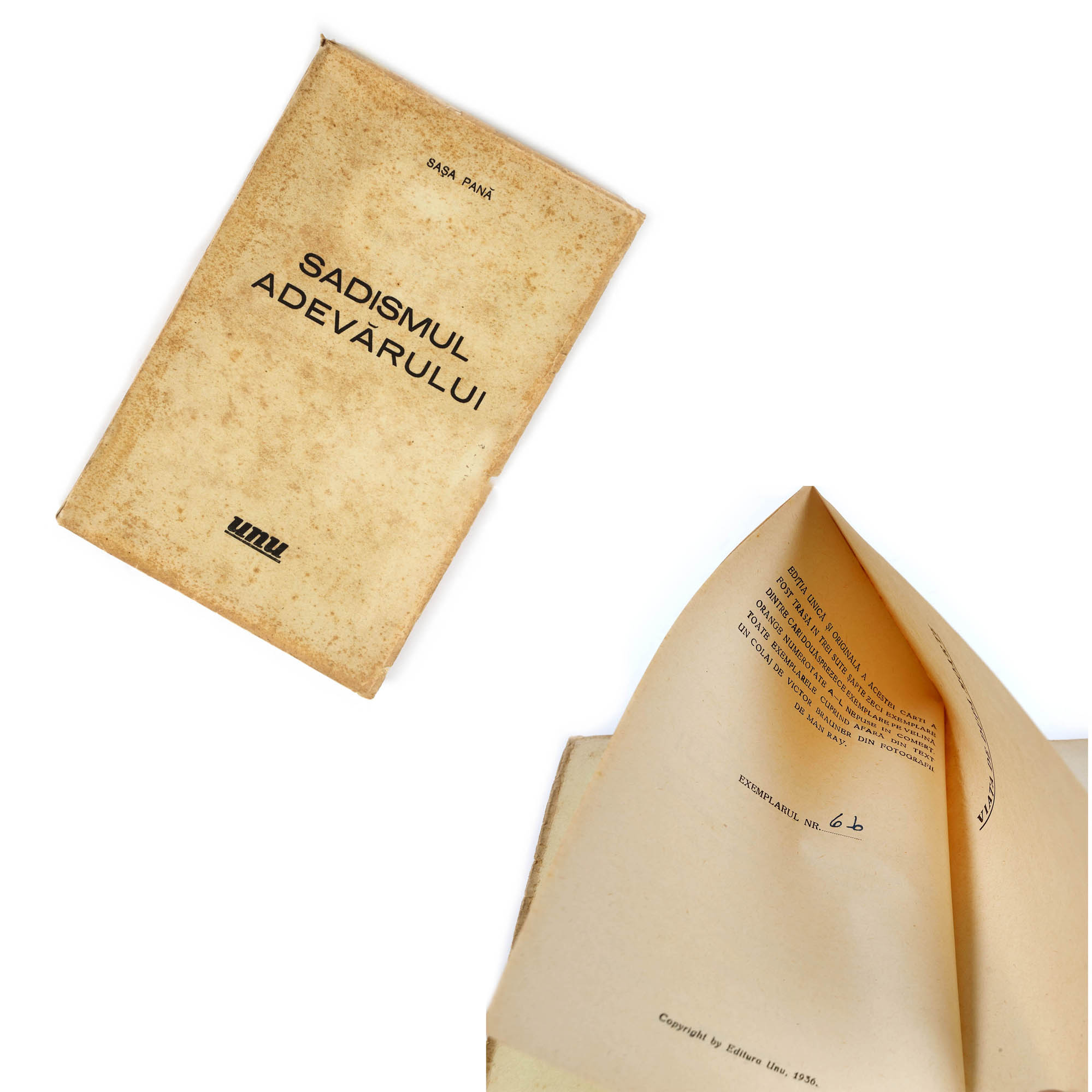 141. ”Sadismul adevărului”, de Sașa Pană, București, 1936, cu un colaj de Victor Brauner realizat după fotografii de Man Ray