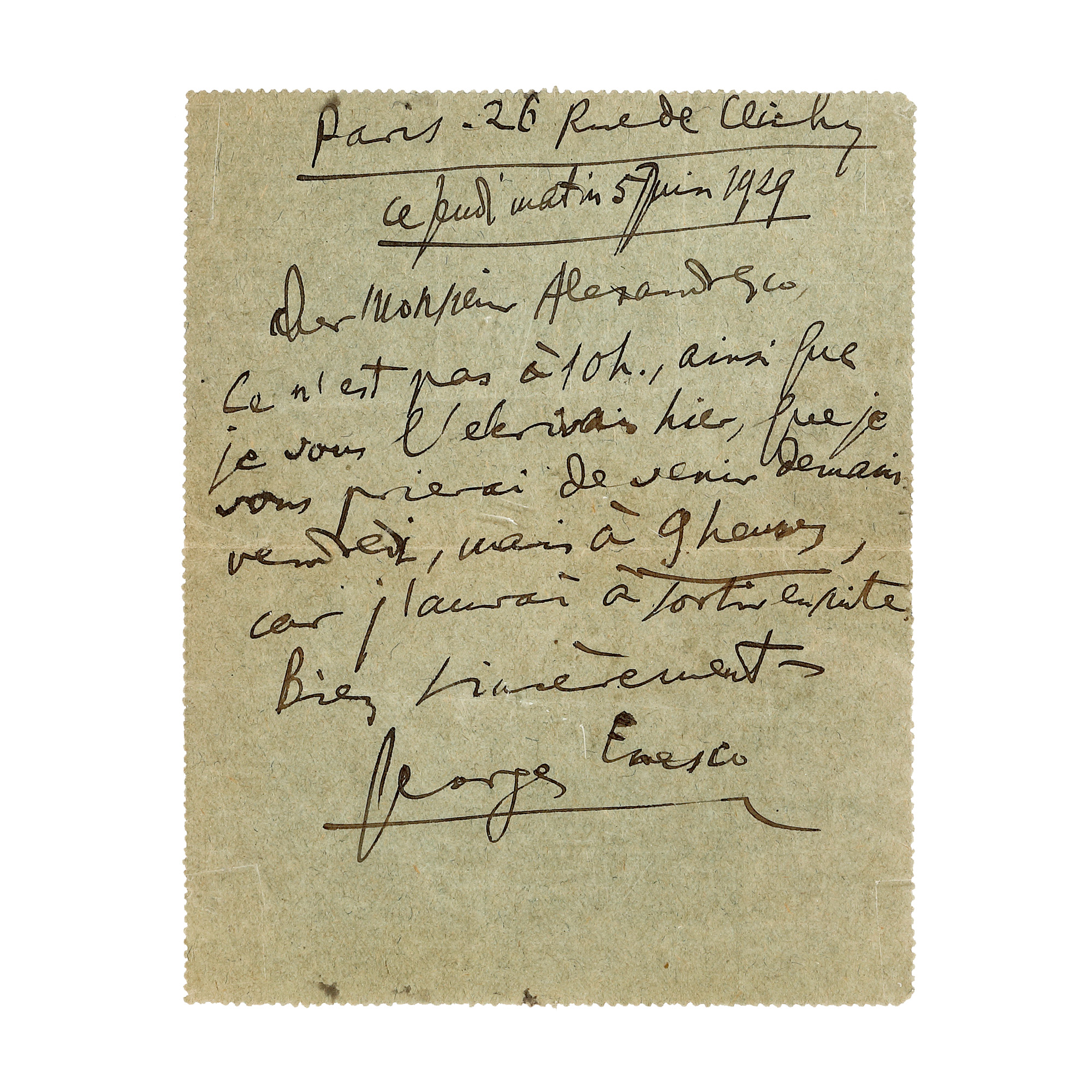 154. Scrisoare trimisă de George Enescu către compozitorul și criticul muzical Romeo Alexandrescu, Paris, 5 iunie 1929
