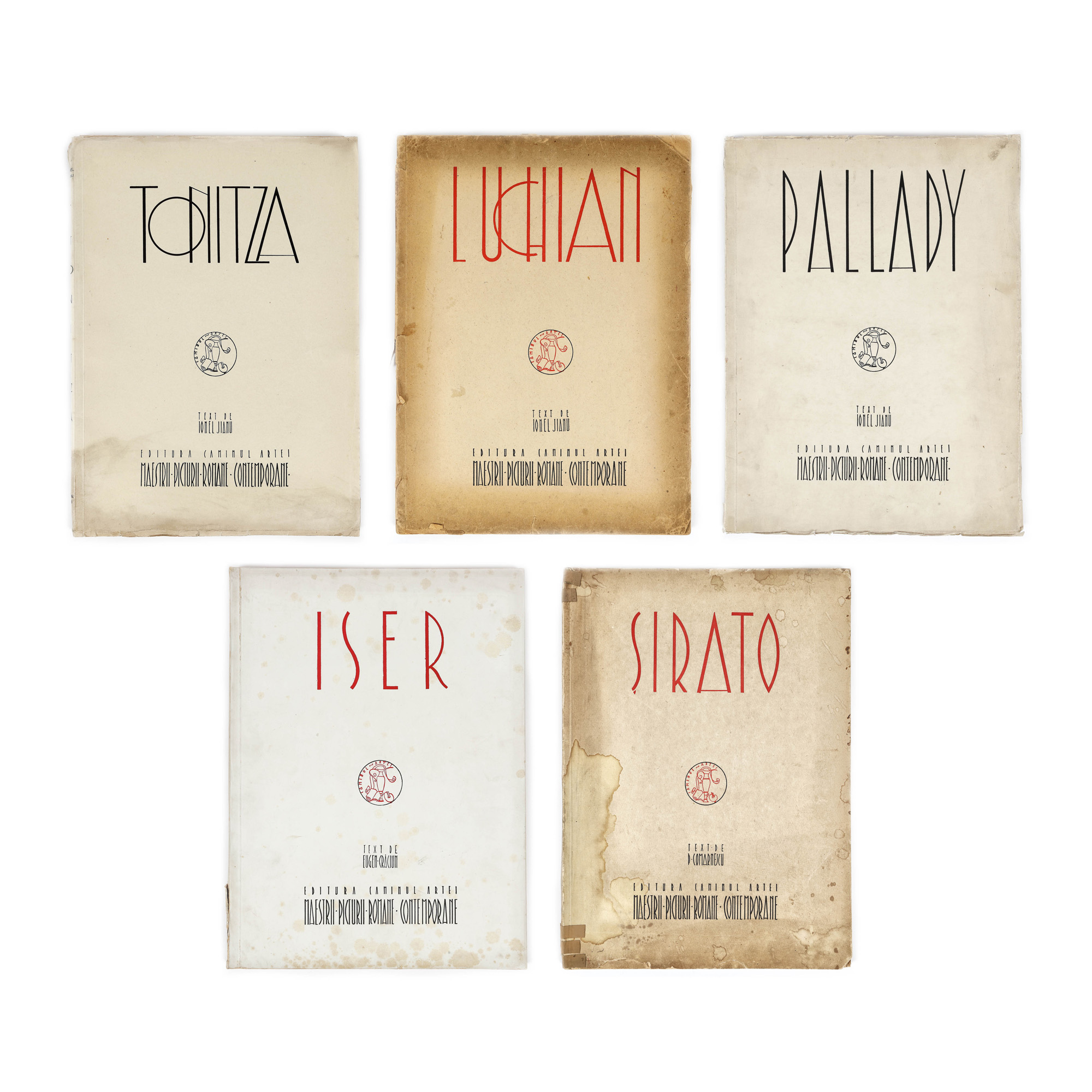 134. Seria completă Căminul Artei, formată din cinci albume: ”Luchian”, Tonitza”, ”Pallady”, de Ionel Jianu, ”Iser”, de Eugen Crăciun și ”Șirato”, de Petre Comarnescu, București, 1944-1947