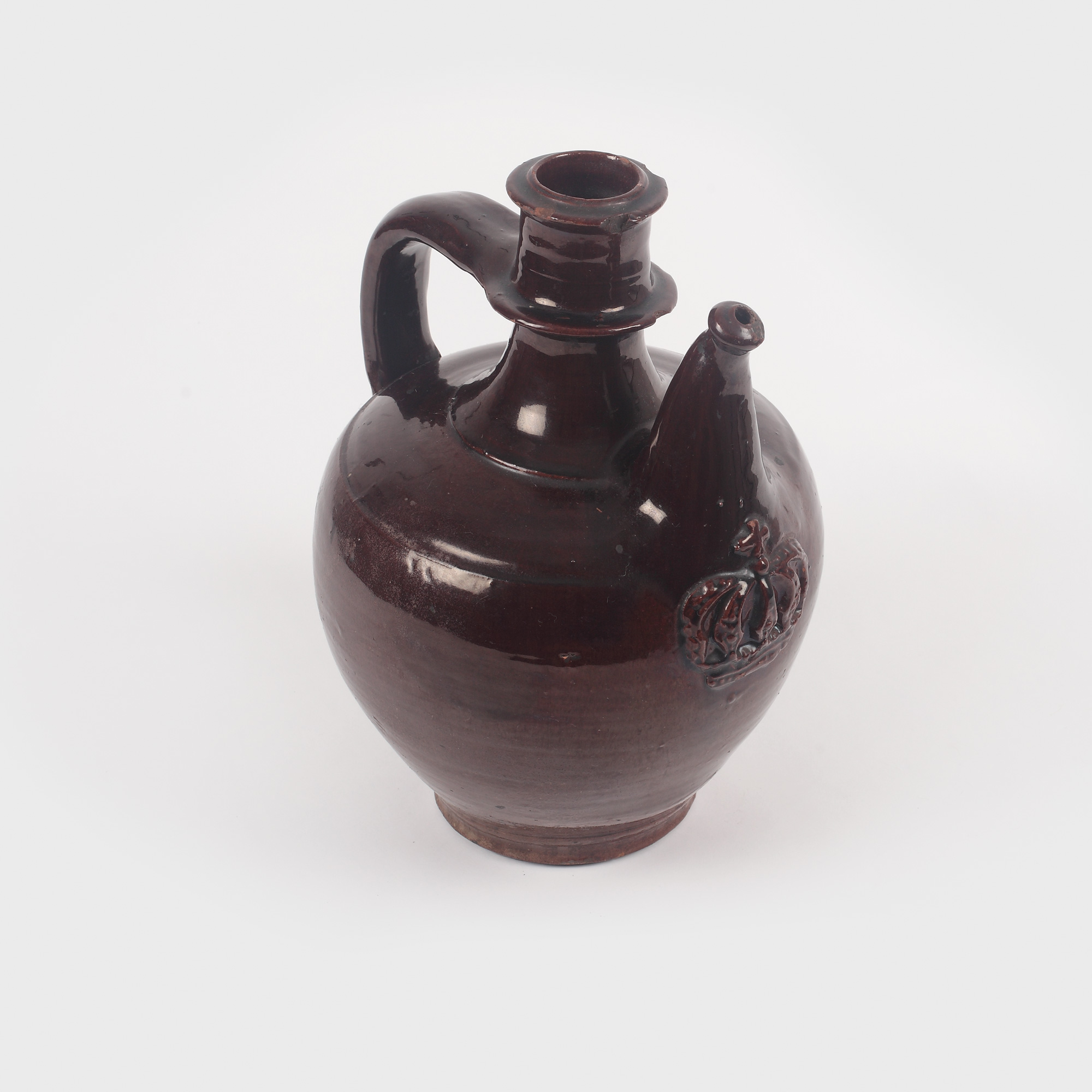 Ulcior, probabil manufactura Domeniului Regal de la Periș, poartă pe bază monograma Administrației Domeniilor Coroanei, incizată în pastă, iar pe burtă se profilează un ornament sub forma coroanei regale. Instituția Domeniilor Coroanei era creată în 1884 la propunerea președintelui Consiliului de miniștri Ion Brătianu și a funcționat până la abdicarea regelui Mihai. Moșiile respective rămâneau în proprietatea statului dar uzufructul lor intra în contul Casei regale care le și exploata în mod direct. Primul administrator al Domeniilor Coroanei, Ioan Kalinderu, era numit de regele Carol I căruia îi prezenta rapoarte anuale, foarte importante astăzi pentru istorici. Lui i-a urmat în funcție prințul Barbu Știrbei. Piesa prezintă o cromatică pe fond brun închis și datează din al doilea pătrar al sec. XX.