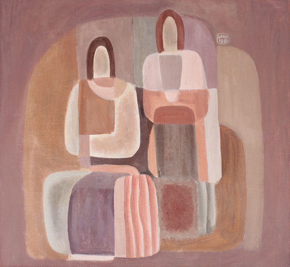 semnat şi datat dreapta sus, cu alb, în monogramă, ŞARU, 1980